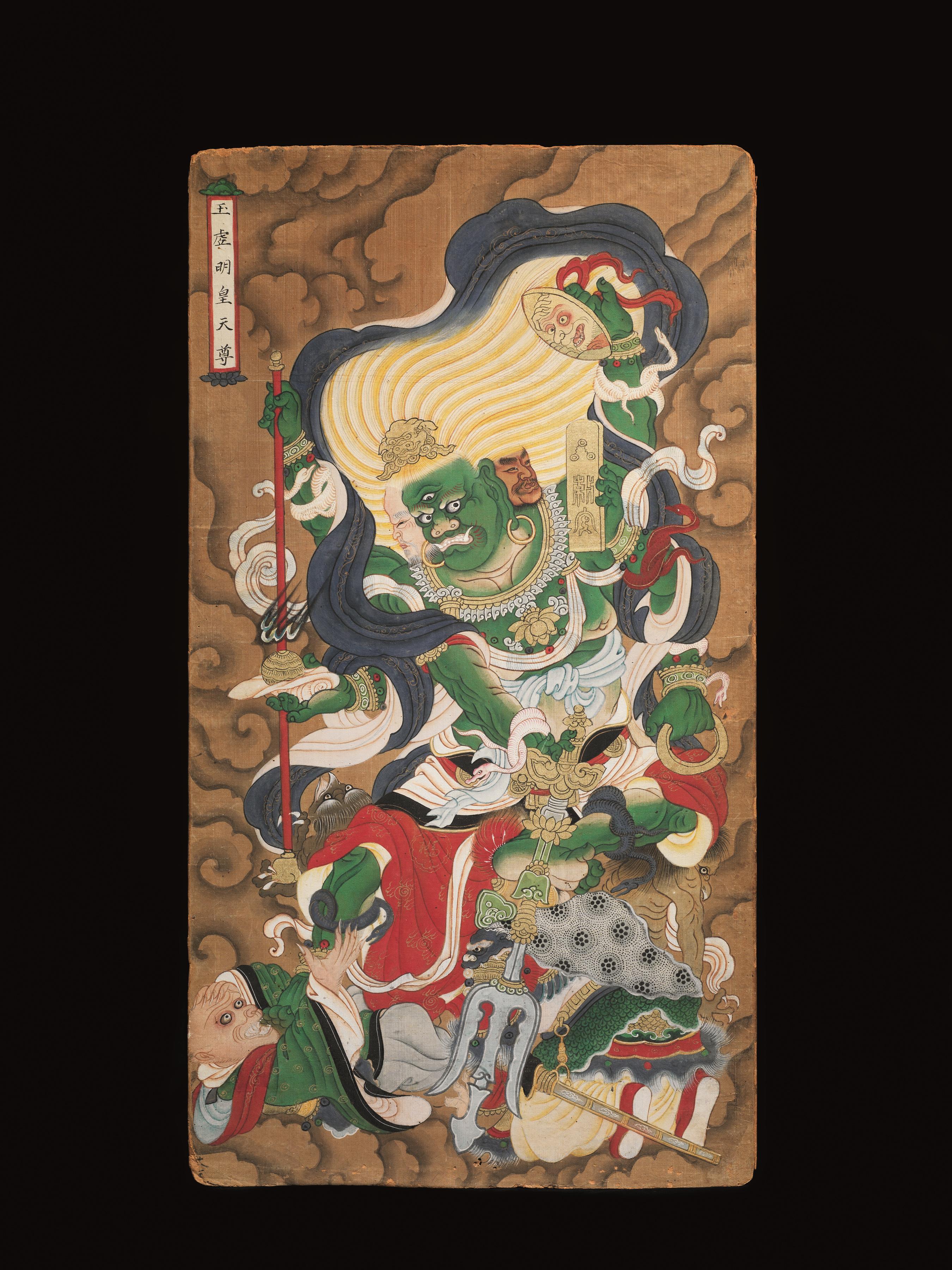 THANGKA CINESE SEC. XIX pittura su seta riportata su cartoncino, cm 63x34,5 A...