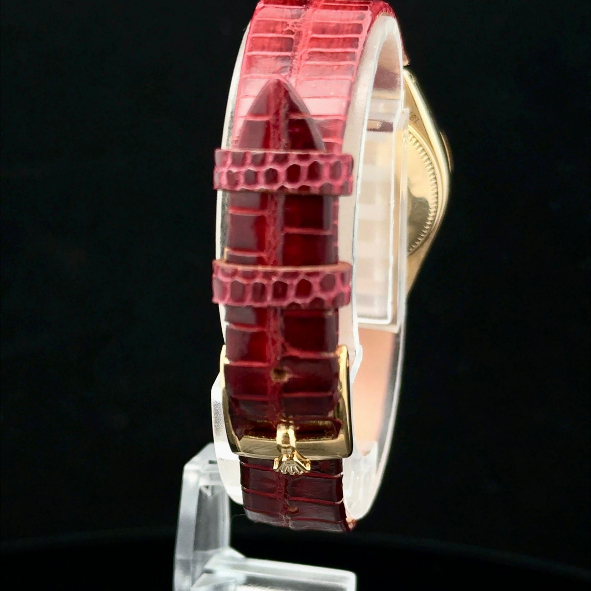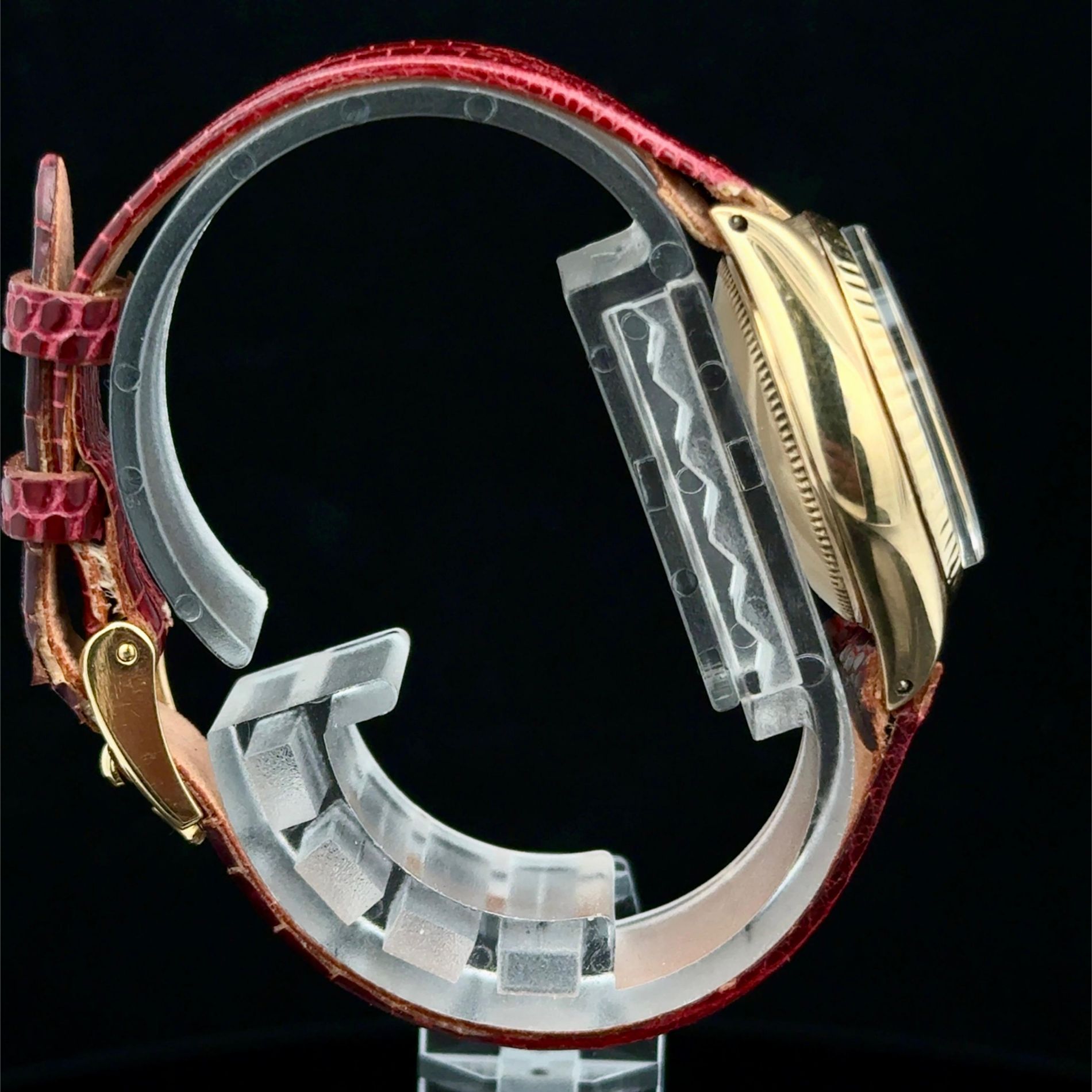 Marca Rolex Modello (Orologio) Lady-Datejust Numero di referenza 6917 Carica Automatico Materiale della cassa Oro Anno di produzione 1982 (Anno approssimativo) Condizione Usato (Ottimo) L'articolo presenta segni di usura lievi, come ad esempio graffi leggeri, ma non percepibili al tatto. Corredo documenti originali, no box Cassa Materiale della cassa Oro Diametro 26 mm Materiale lunetta Oro giallo Vetro plexiglas No box, documenti originai Cinturino pelle non Rolex con fibbia originale Rolex - COMMISSIONE D’ASTA 25%