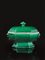 in porcellana con invetriatura verde e azzurra dalla forma ottagonale composto da due contenitori e un coperchio, cm 18x15