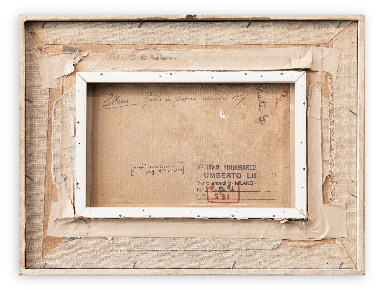 Iscrizione 'Galleria Gussoni - Dicembre 1957' al retro