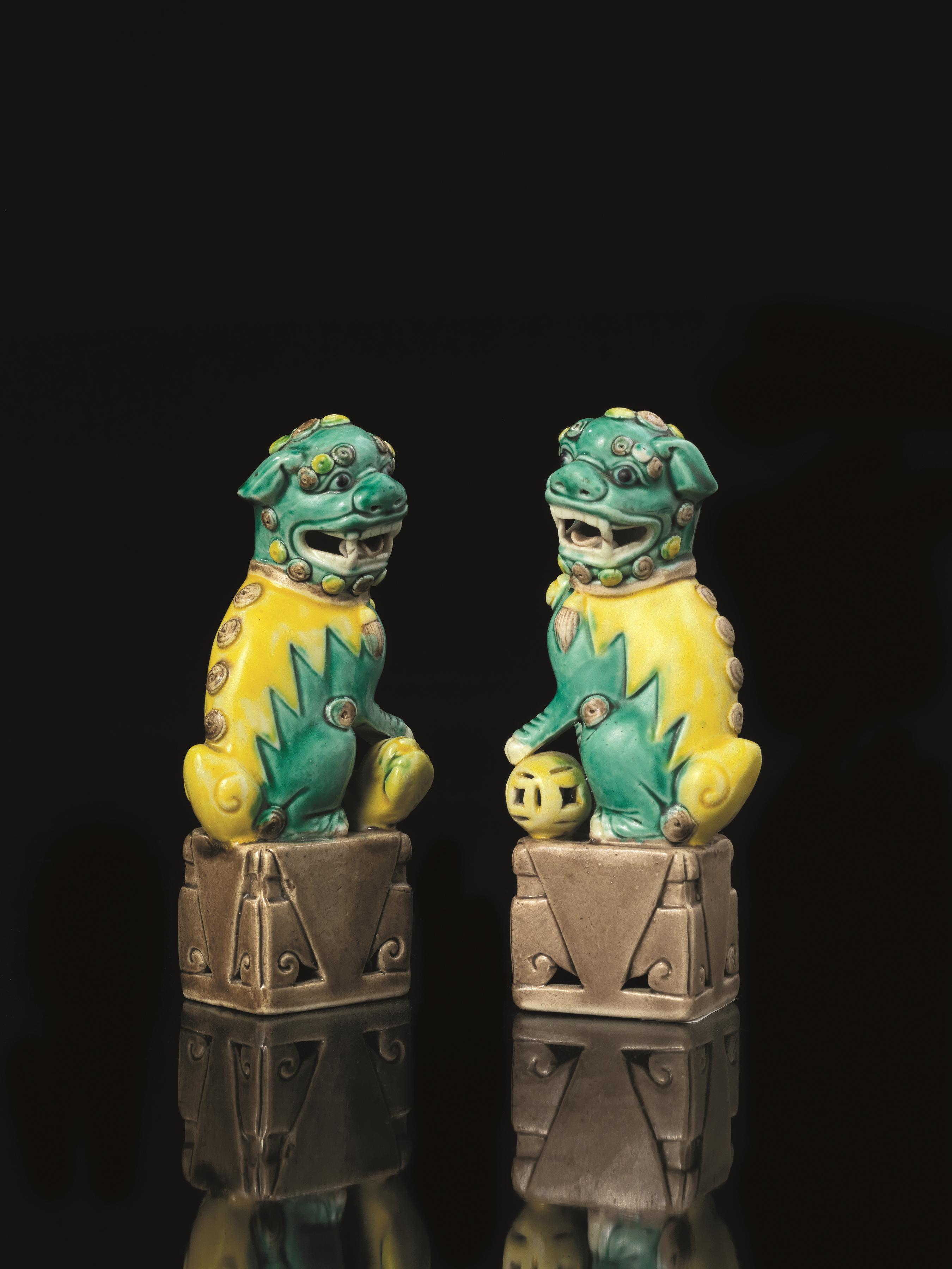 A pair of sancai glazed Pho dogs China Qing dynasty