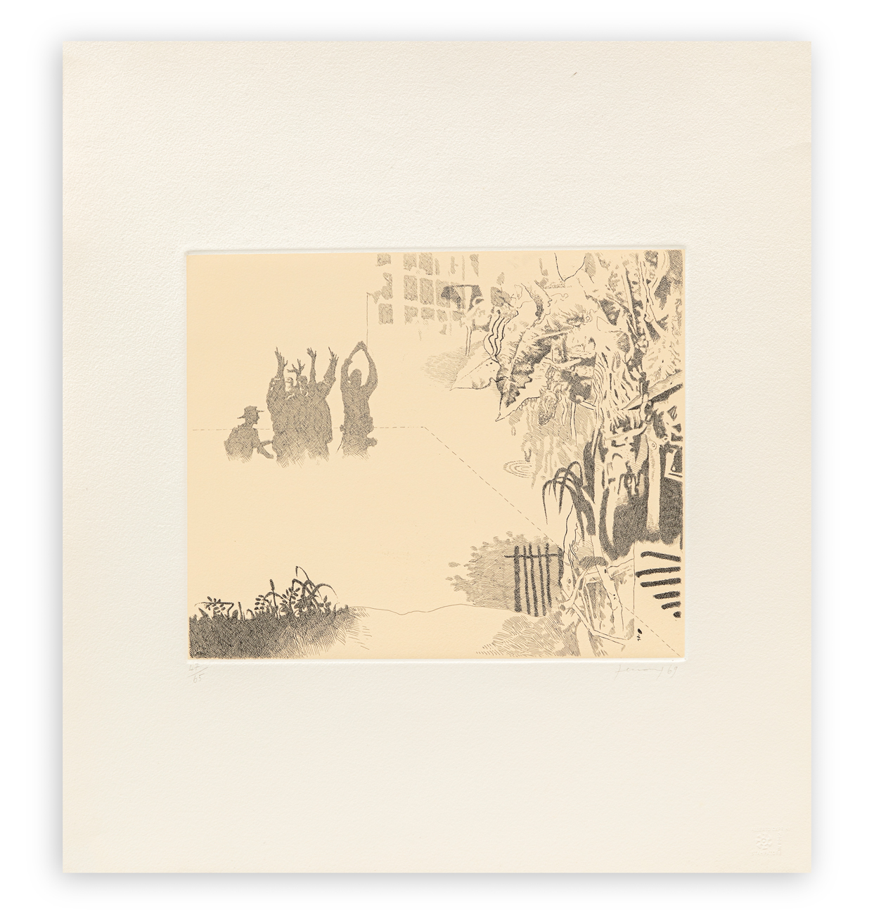 Opera originariamente parte di una cartella contenente 6 incisioni edita dalla Galleria Il Fante di Spade nel 1969