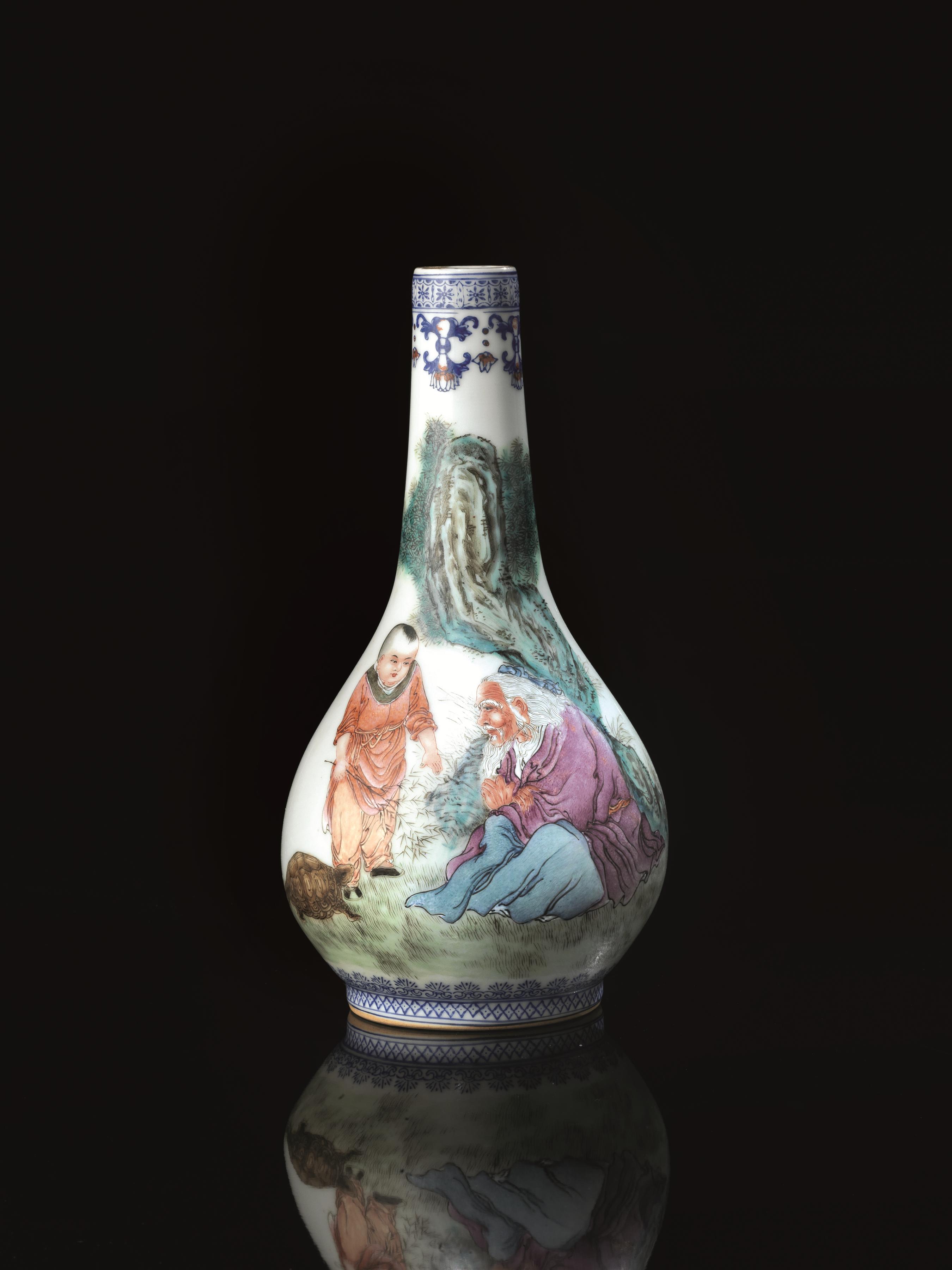 Lot 207 | VASO CINA SEC. XXin porcellana policroma finemente decorato con bambino e...