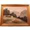 Pietro Leidi (1892/1976) "Paesaggio montano con casolari e figure" Dipinto ad olio su tela in cornice in legno dorato. Cm 70x100