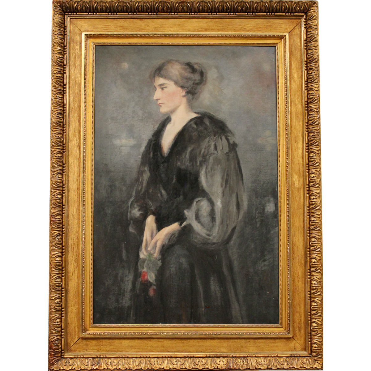 Scuola italiana della fine del secolo XIX "Figura di donna" Dipinto ad olio su tela in cornice in legno dorato. Cm 92x61