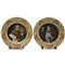 Coppia di piatti Antica porcellana decorata con figura di monaci bevitori e fine decoro sui bordi policromo e dorato (uno dei due piatti restaurato). Vienna. Secolo XIX. Cm d 24