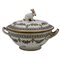 Tazza da puerpera Antica porcellana con decoro floreale e geometrico policromo e in oro (restauri). Sul coperchio impugnatura a forma di coniglio. Napoli. Epoca Ferdinando IV. Cm d 19