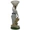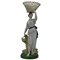 Stagione Grande statua che sorregge cesto traforato in antica porcellana policroma (varie failure sotto la base e danno alla falce). Vienna. Fine secolo XIX. Cm h 62,5