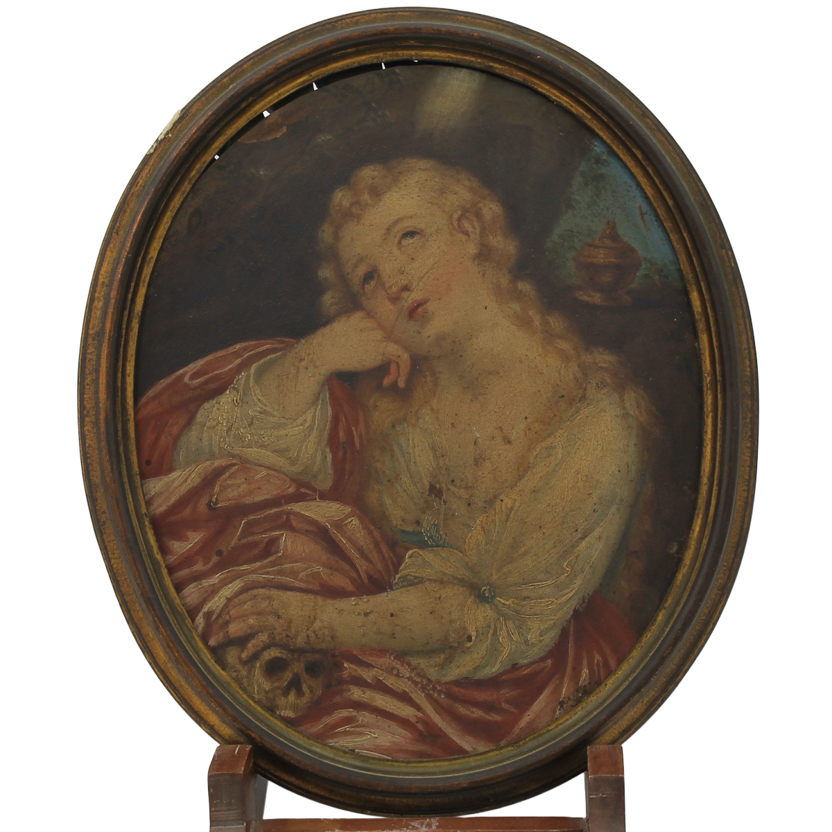 Scuola siciliana del secolo XVIII "Figura di Santa" Dipinto ad olio su rame. Cm 20x16