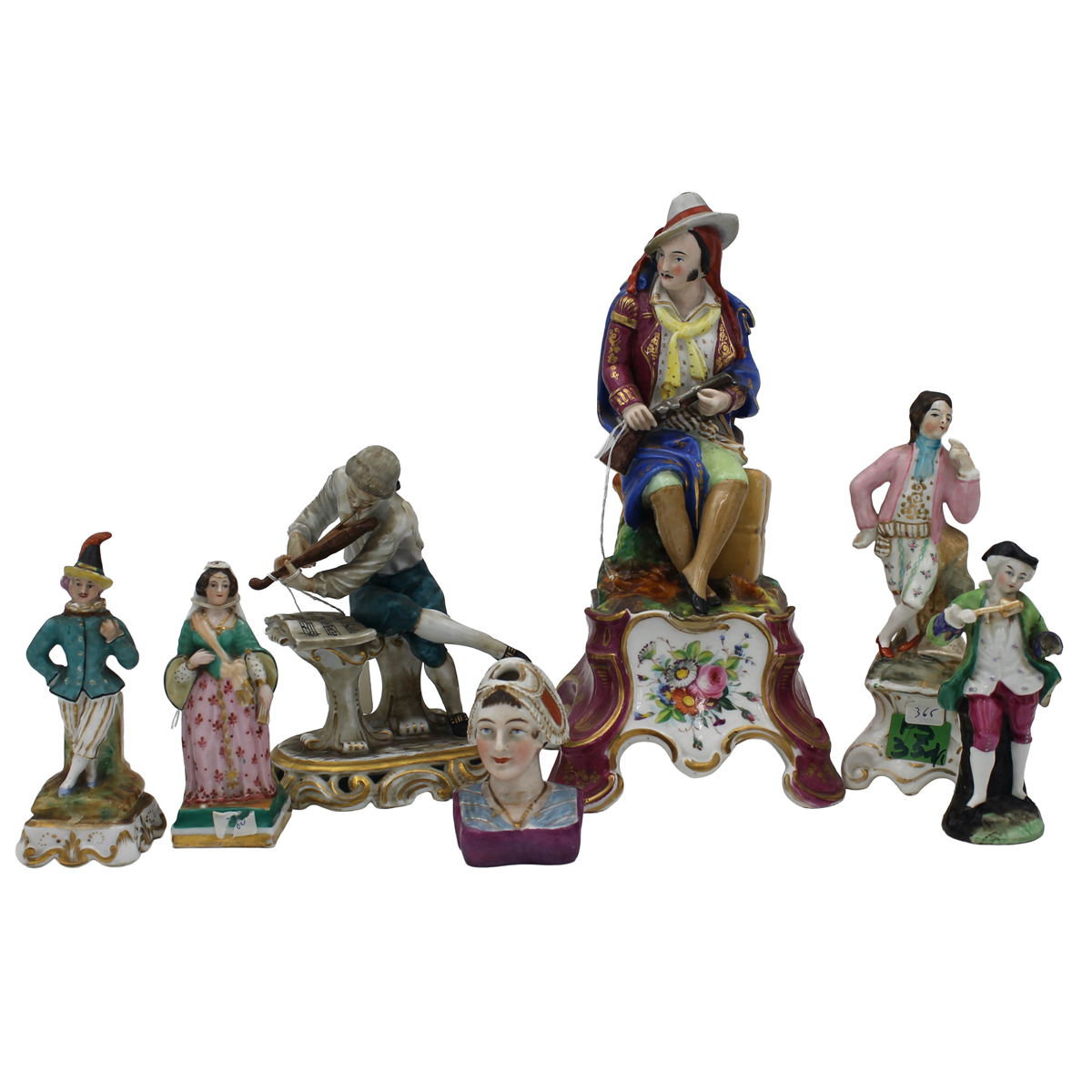 Sette statue Antica porcellana policroma a vari soggetti. Seconda metà del secolo XIX. Cm h 30,5