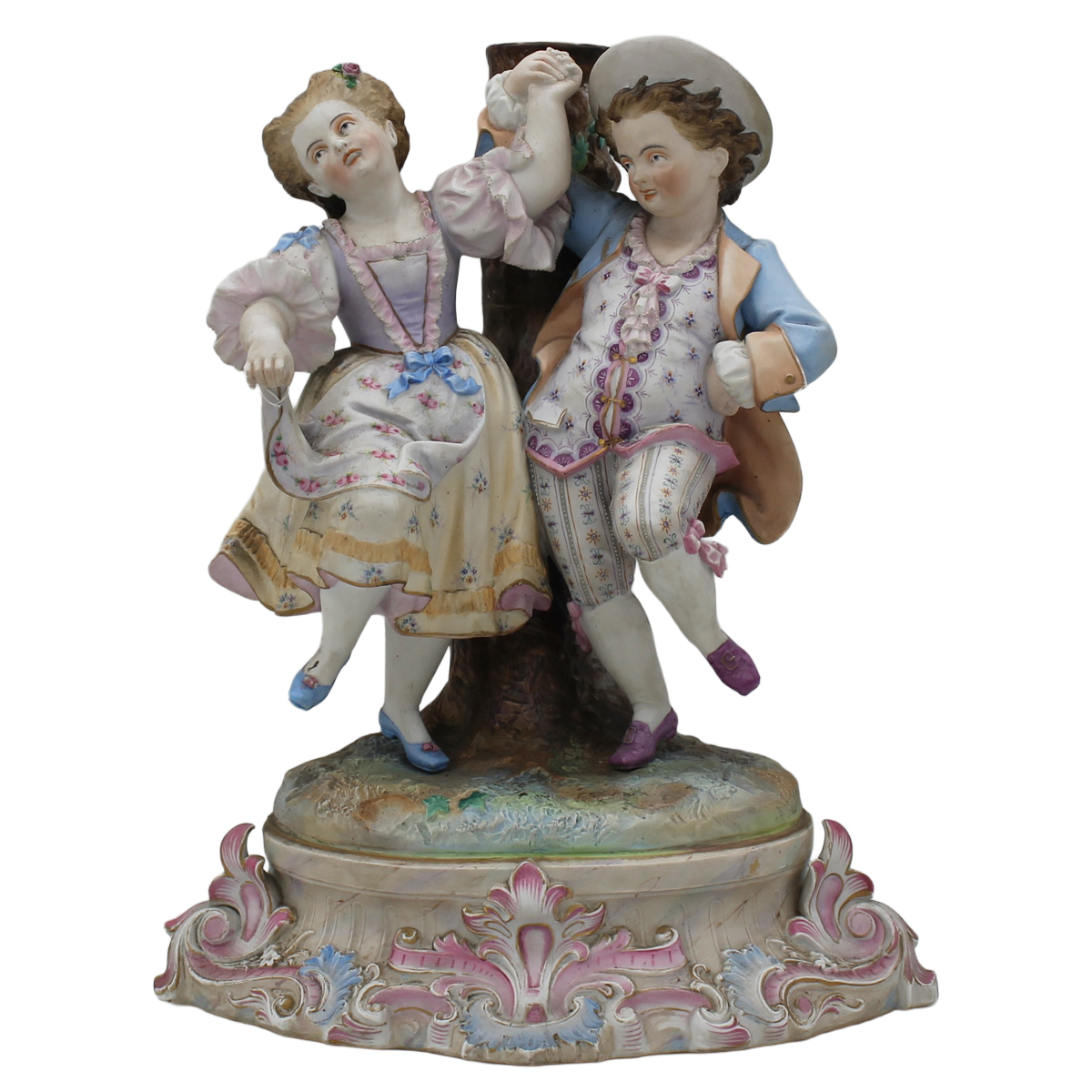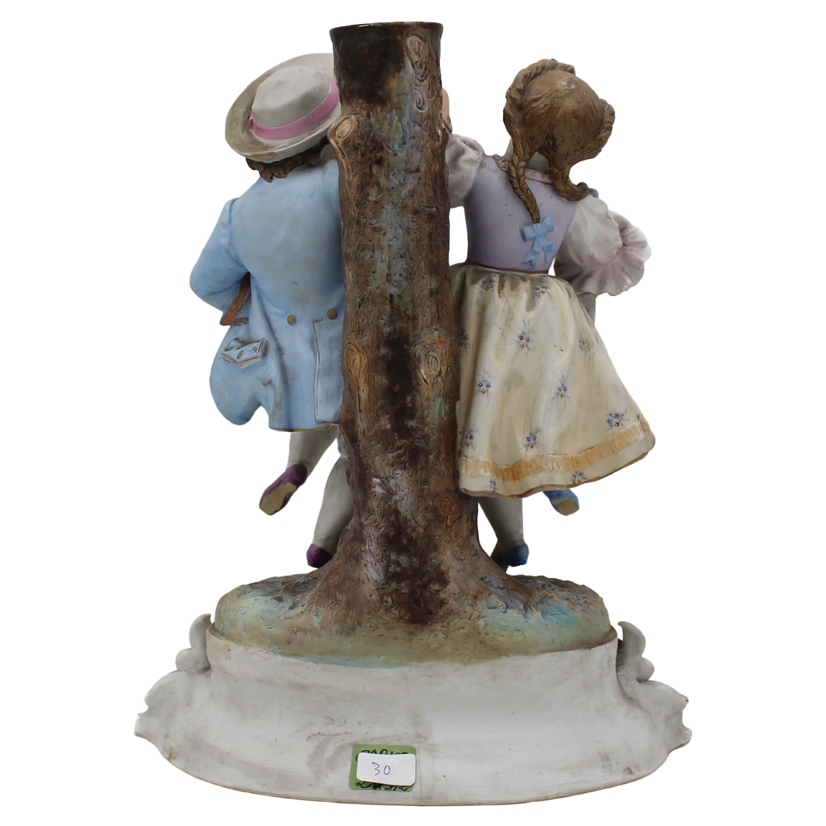 Giochi di bimbi Grande statua in biscuit policromo. Francia. Inizi secolo XX. Cm h 36,5