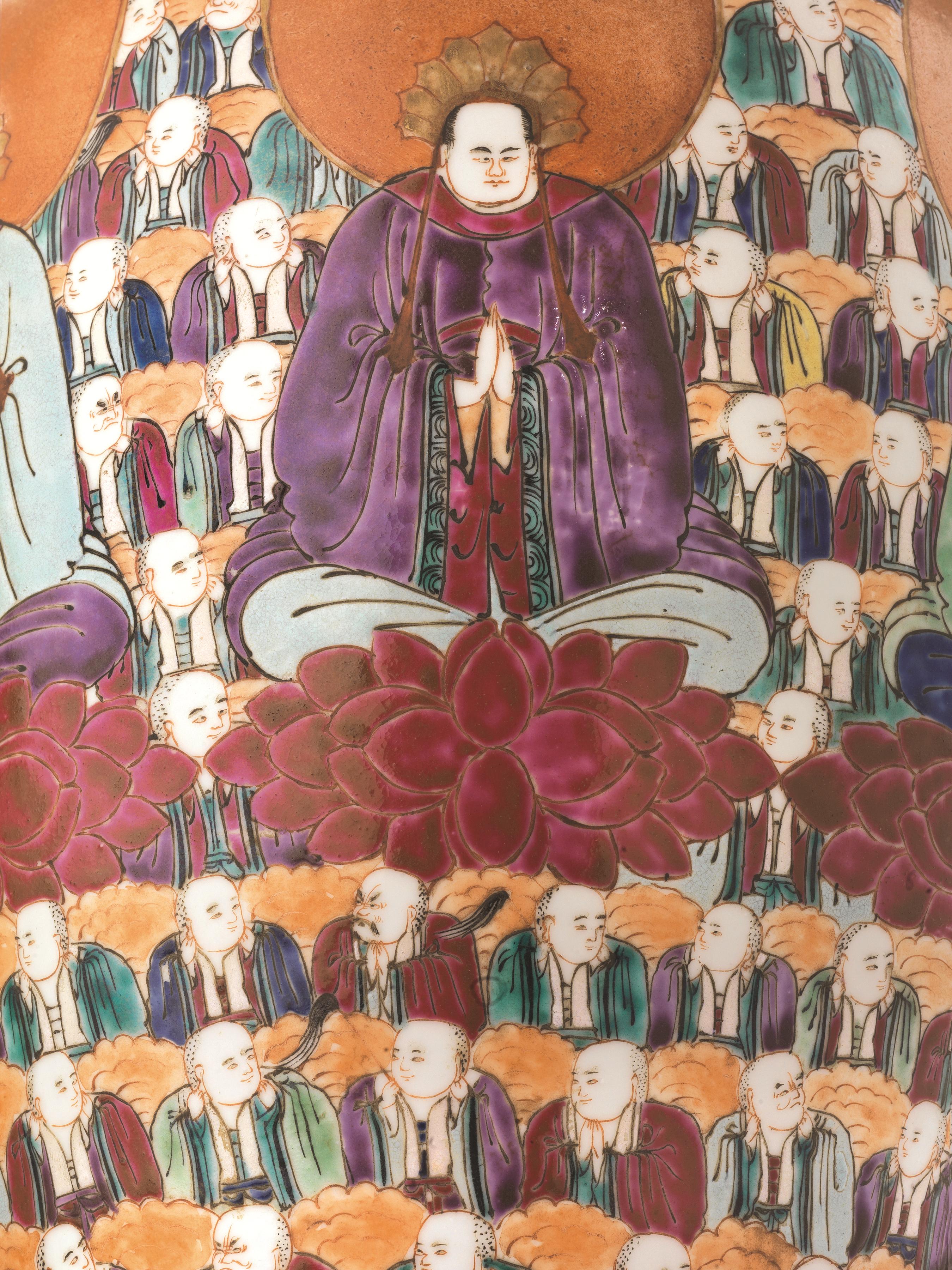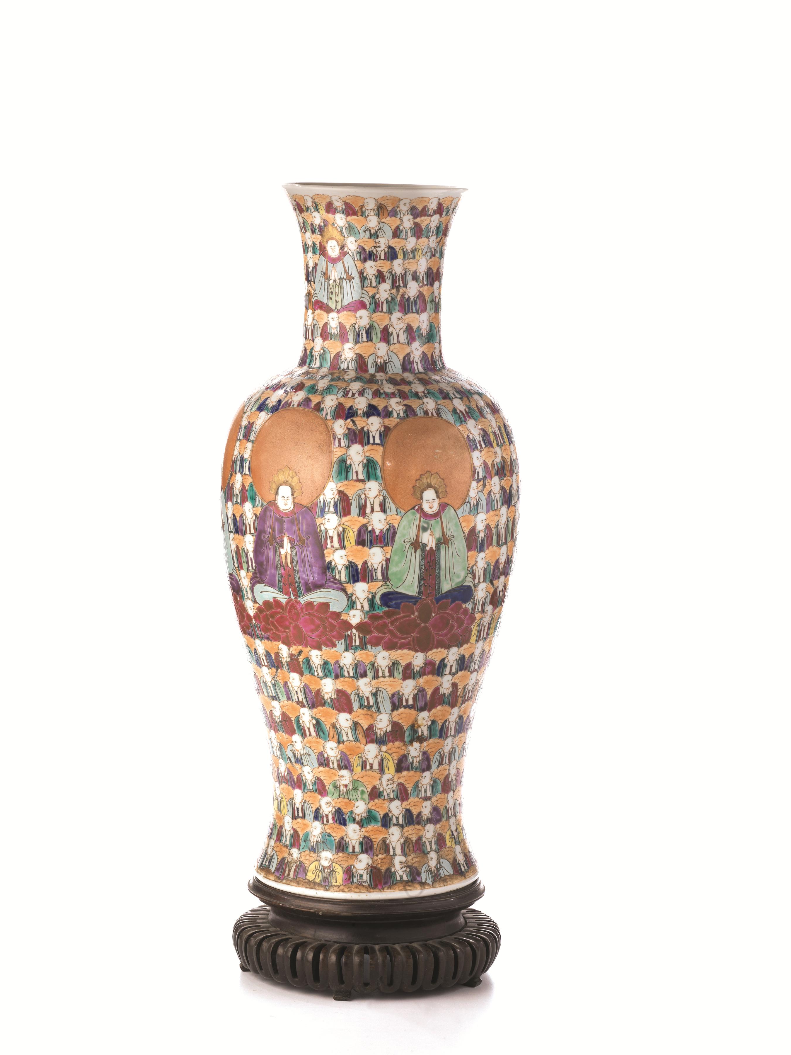 in porcellana policroma finemente decorato con i mille Buddha, recante marchio Yung-Cheng alt. cm 62