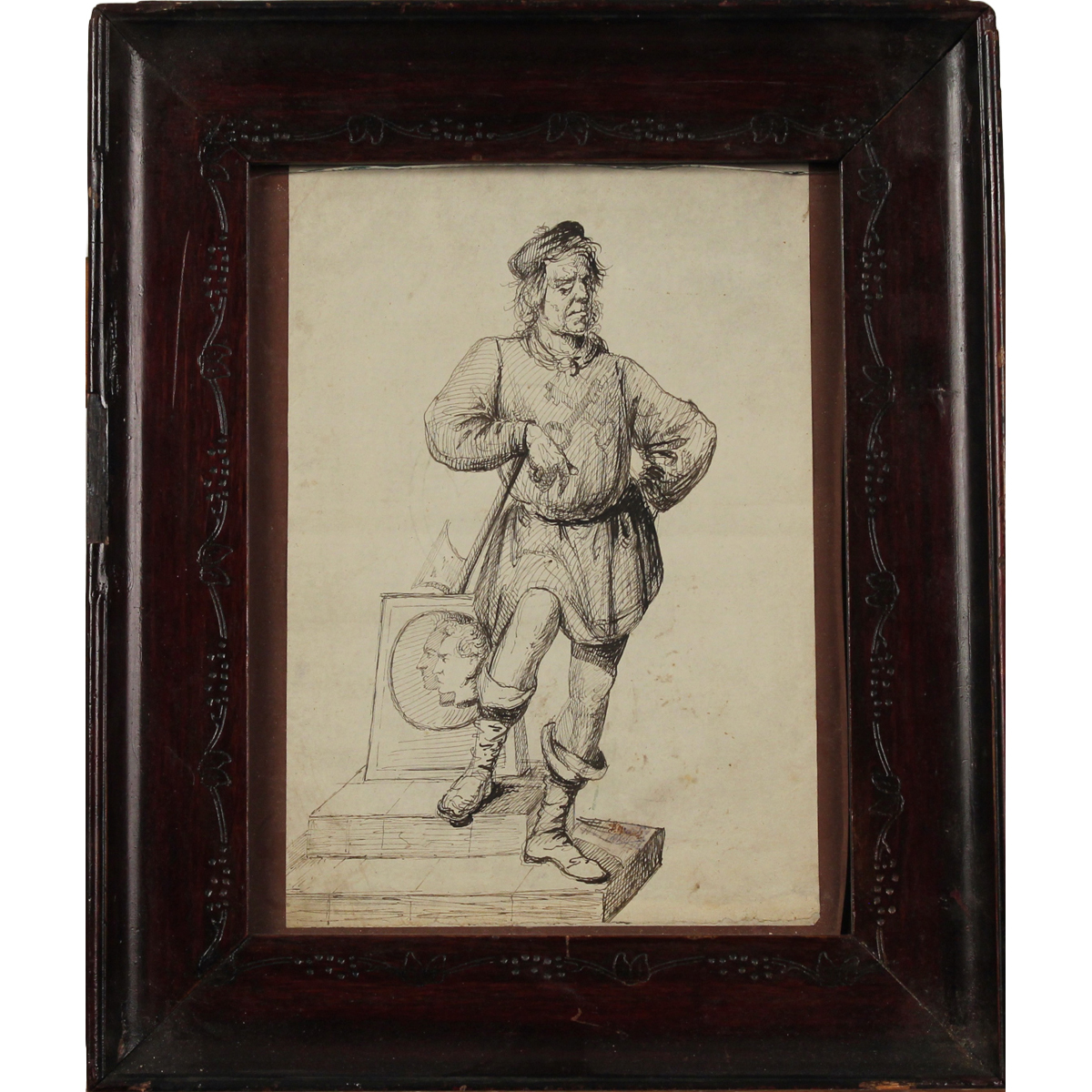 Domenico Morelli (1823/1901) (attr.) "Il boia" Disegno a inchiostro su carta in cornice in legno. Cm 28x19