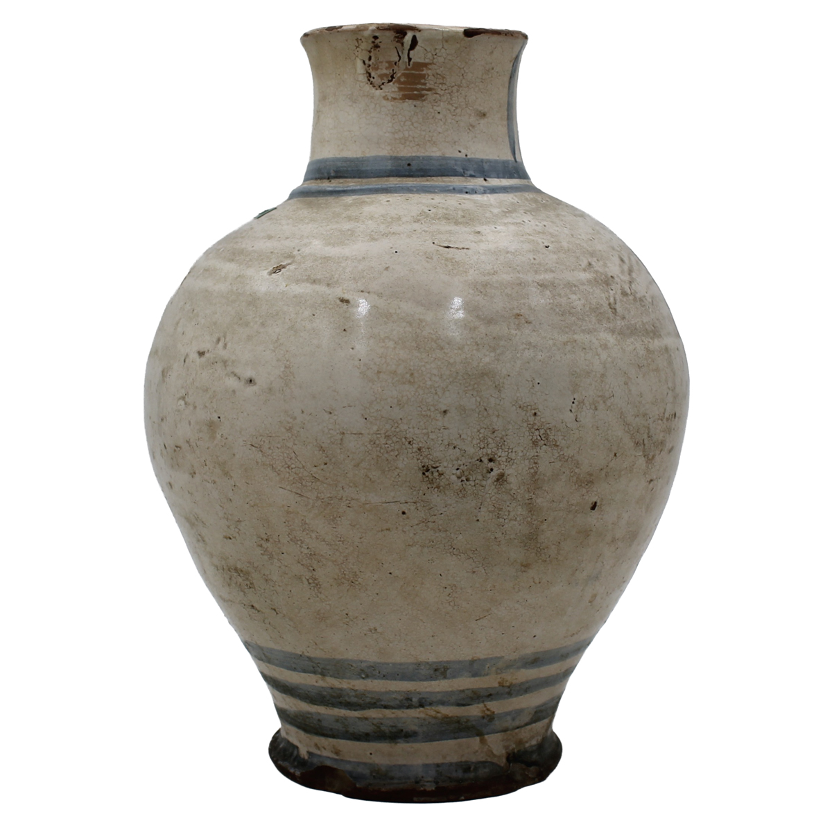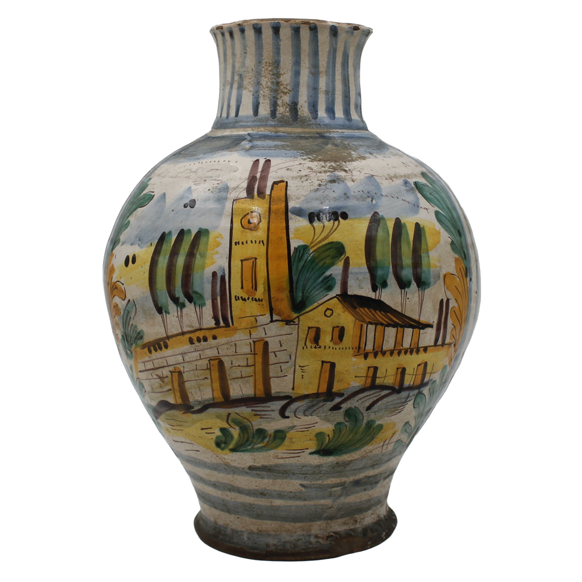 Grande vaso ovoidale Antica maiolica raffigurante paesaggio con casolari su fondo bianco (segni di usura). Napoli. Inizi secolo XIX. Cm h 33,5