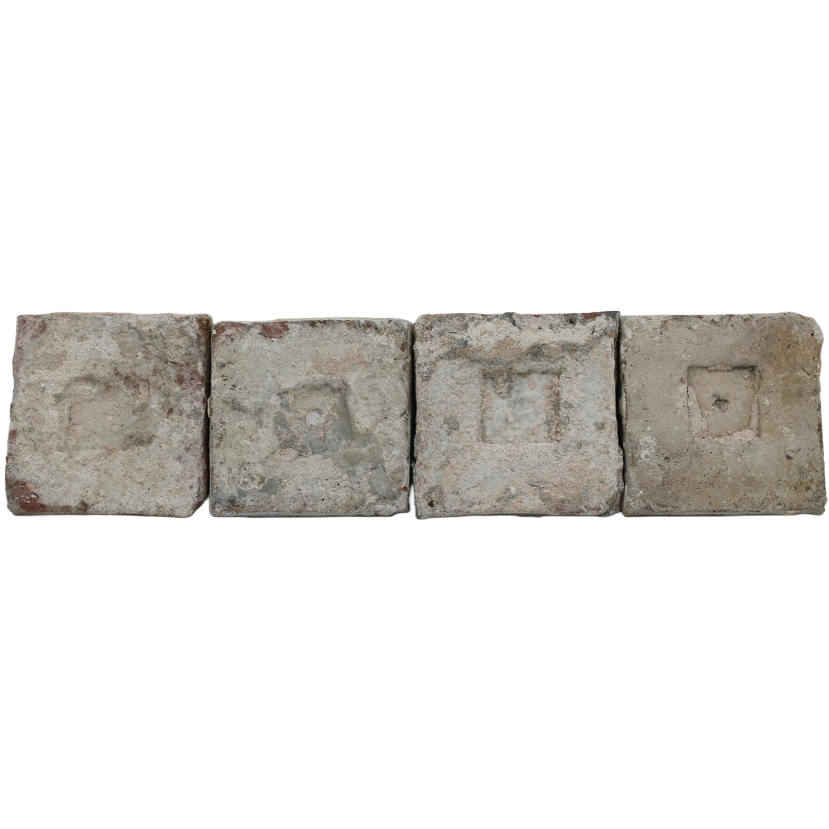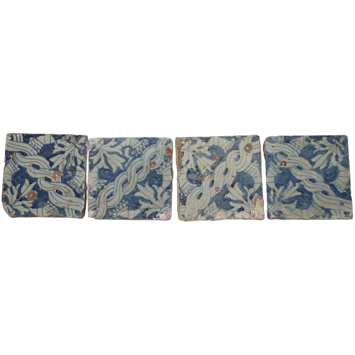 Quattro mattonelle Antica maiolica con decoro ornamentale policromo. Sciacca. Secolo XVII. Cm 14x14