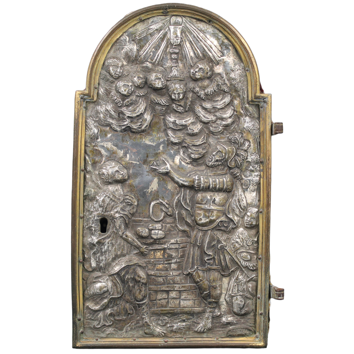 Sportello di tabernacolo Argento inciso e sbalzato raffigurante scena sacra. Secolo XVIII. Sicilia. Cm 37,5x21,5