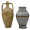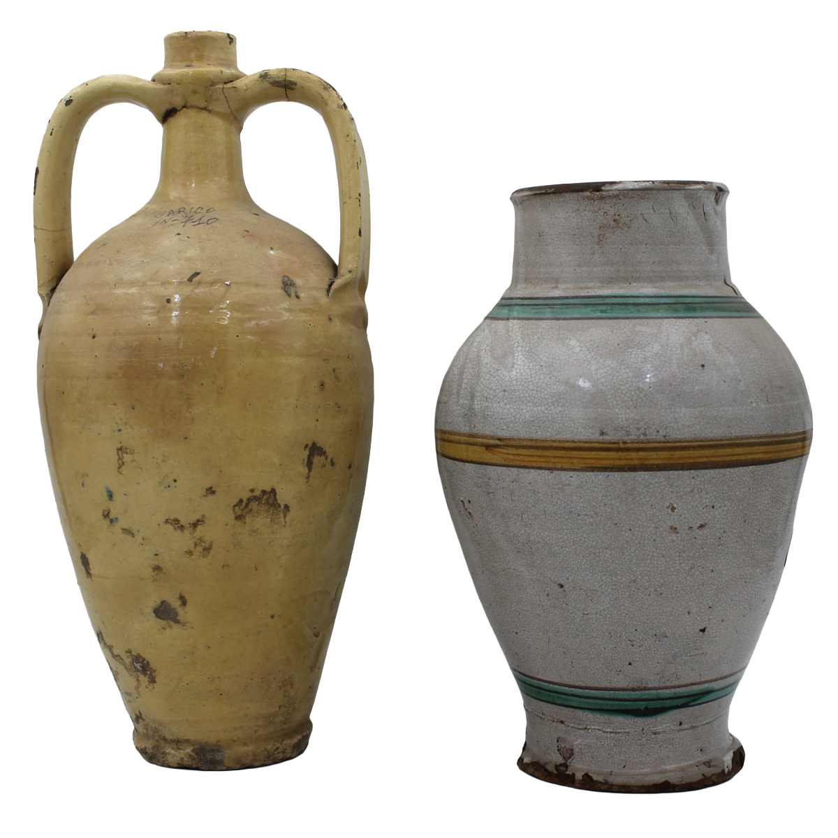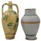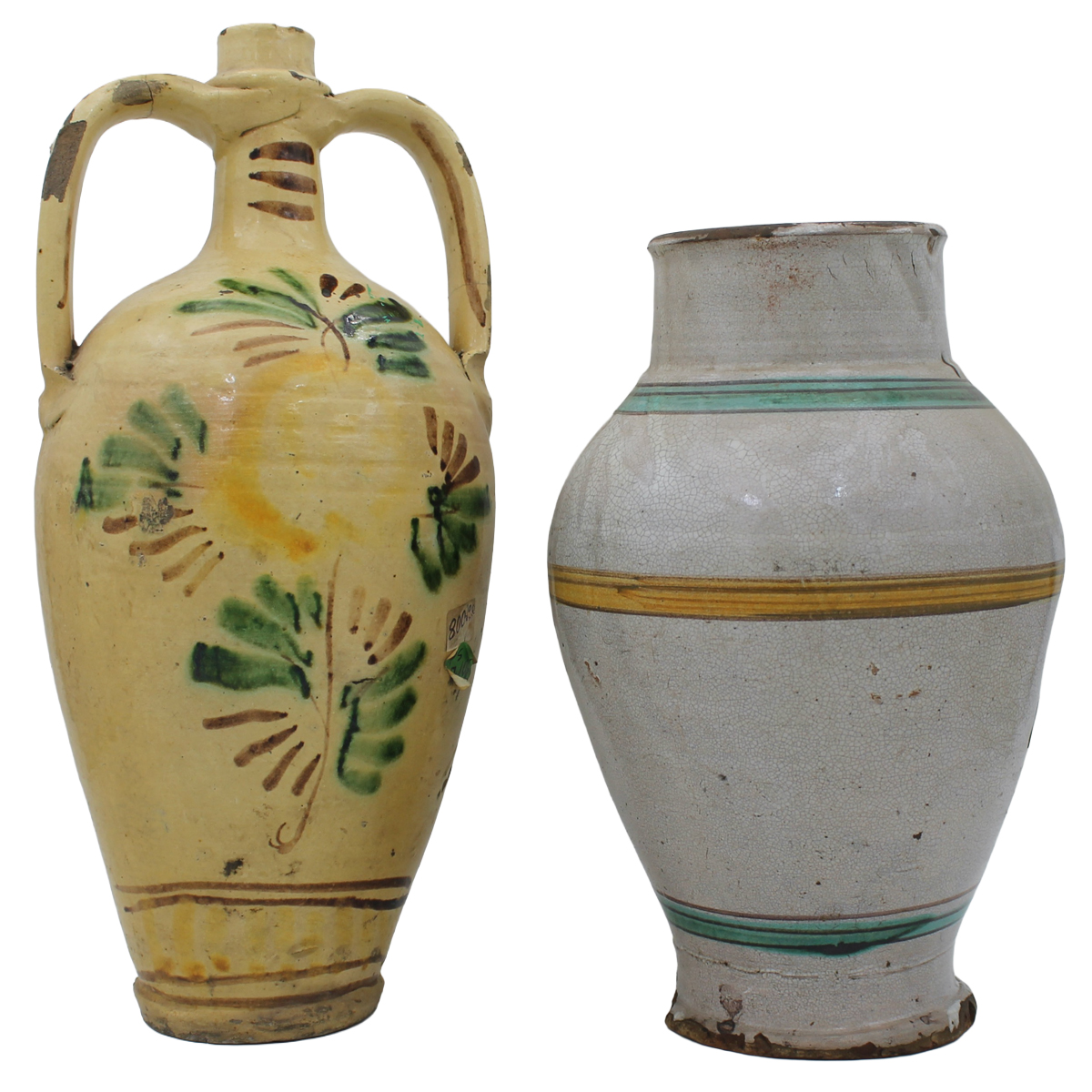 Grande vaso e un bummulo Antica maiolica con decoro a motivi vegetali policromi. Caltagirone. Fine secolo XIX. Cm h 47; cm h 37,5