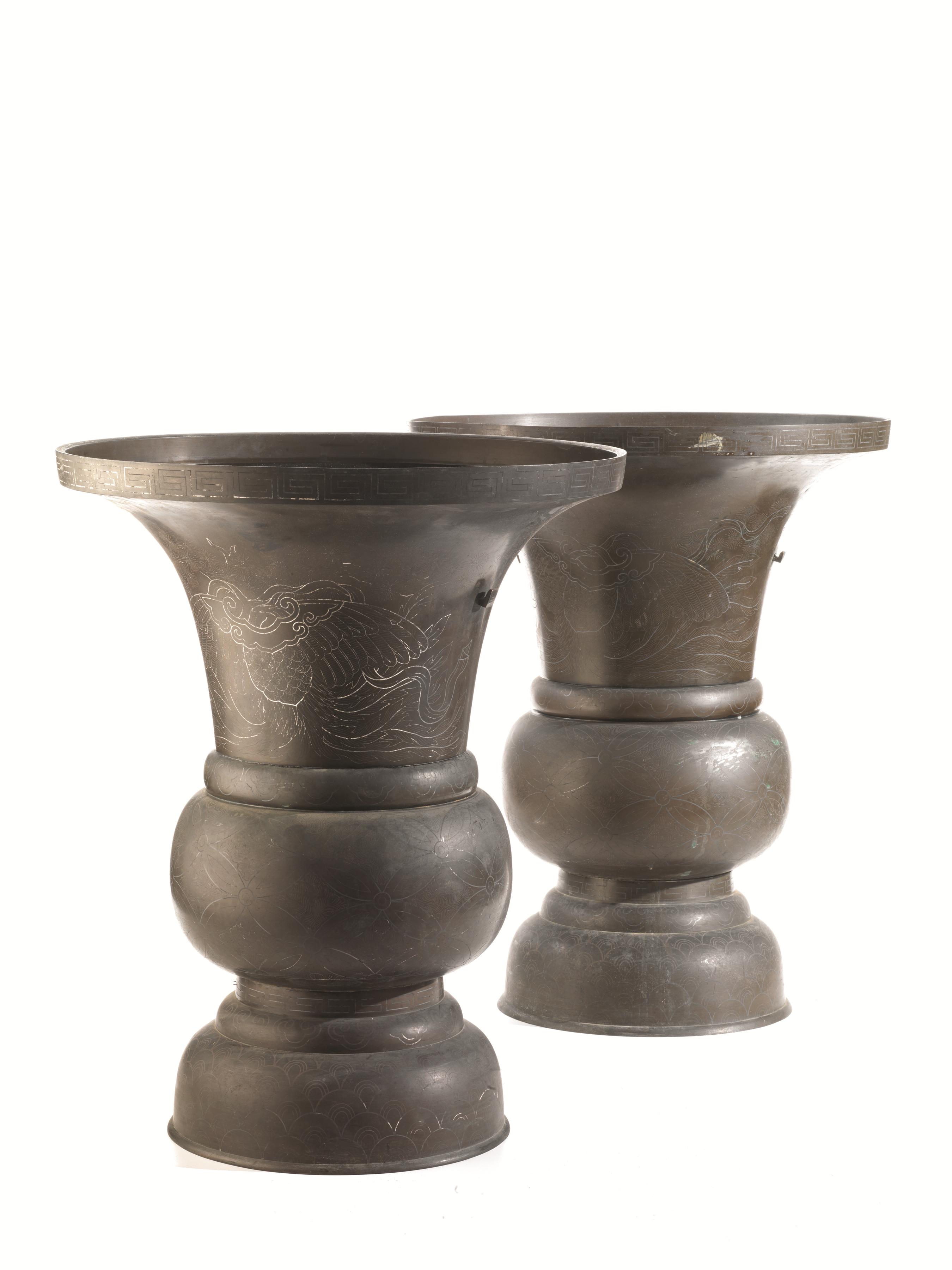 A pair of Japsnese bronze vases Meiji period