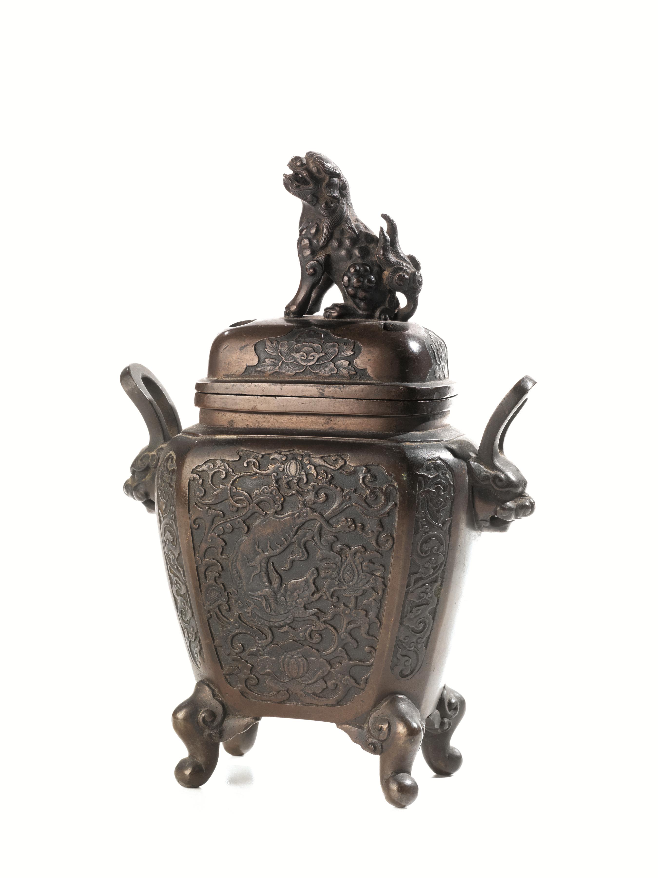 INCENSIERE, GIAPPONE, SEC. XIXin bronzo decorato con drago tra ramages...