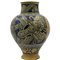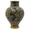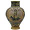 Grande vaso ovoidale Antica maiolica decorata sul davanti con medaglione centrale raffigurante Cristo in croce e sul retro decoro a trofei e motivi ornamentali (ricostruzione del collo e lievi restauri al piede). Palermo Siglata S.P.Q.R. Secolo XVII. Cm h 35