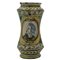 Albarello Antica maiolica con medaglione centrale raffigurante profilo maschile. Sul retro decoro a trofei e motivi ornamentali (piccole failure al collo). Sciacca. Fine secolo XVII. Cm h 26