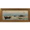 Erminio Kremp (1860/1936) "Marina con barche di pescatori" Dipinto ad olio su tela in cornice in legno dorato. Cm 23x62,5