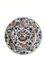 in porcellana policroma con decori imari floreali nei toni del rosso, verde e oro, diam cm 40