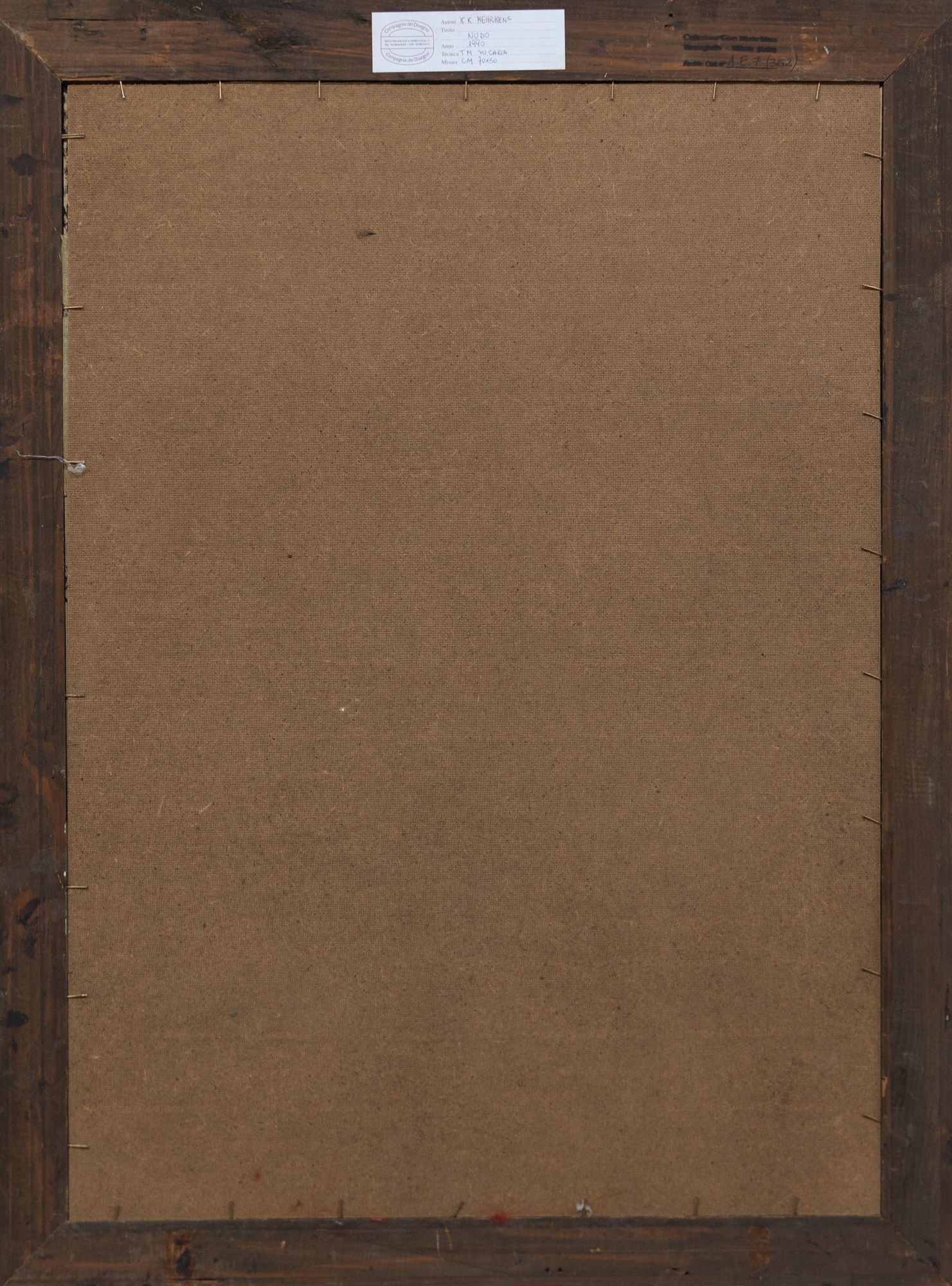Etichetta al retro, Galleria Compagnia del Disegno, Milano