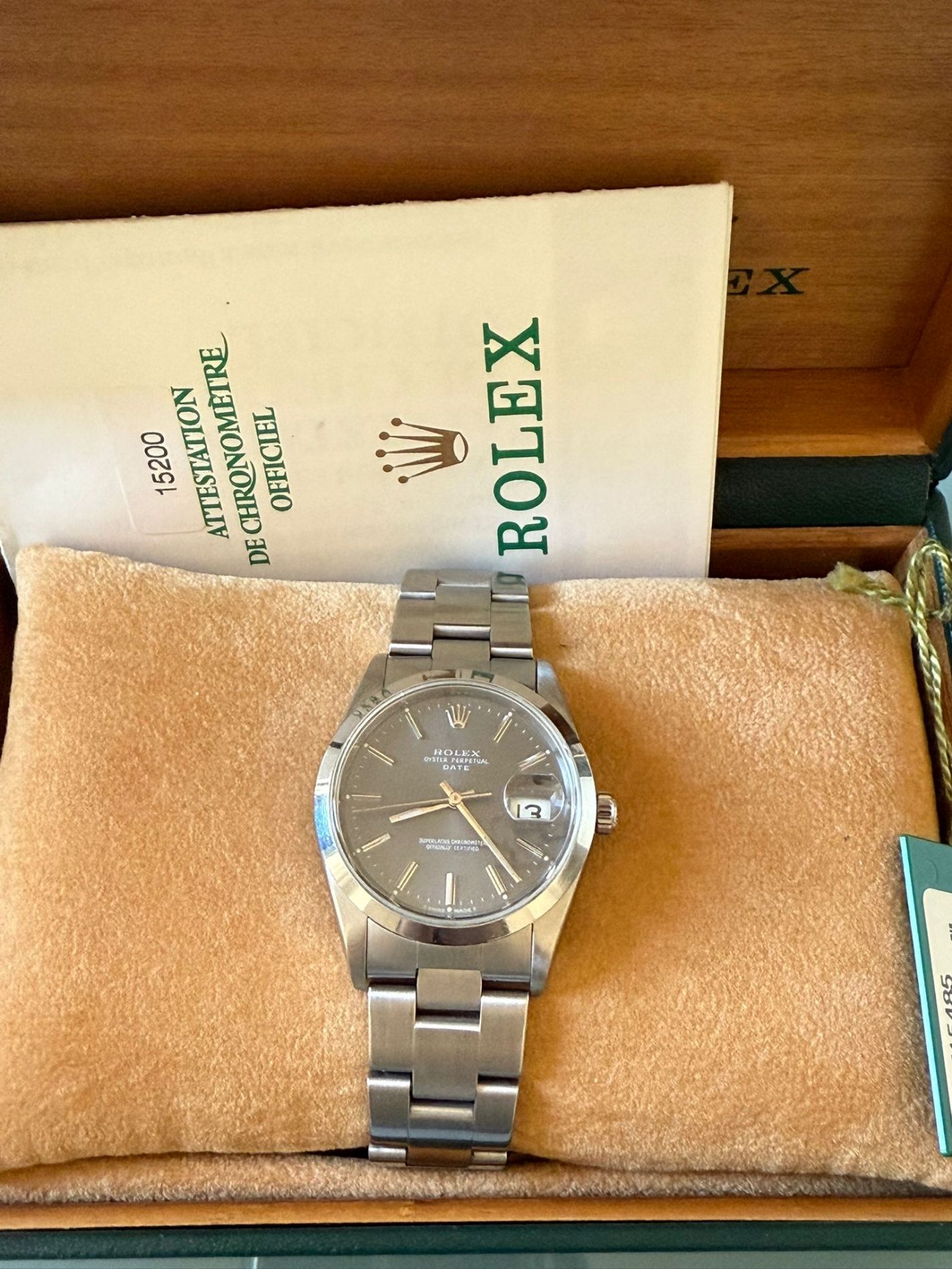 Marca Rolex Oyster Perpetual Date Numero di referenza 15200 Carica Automatico Materiale della cassa Acciaio Materiale cinturino Acciaio Anno di produzione 1997 Condizione Usato (Buono) documenti originali, no box Carica Automatico Cassa Materiale della cassa Acciaio Diametro 34 mm Cinturino Materiale cinturino Acciaio Colore cinturino Acciaio - COMMISSIONE D’ASTA 25%