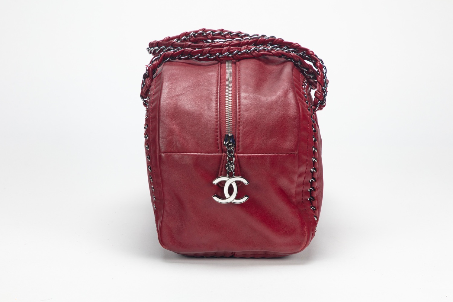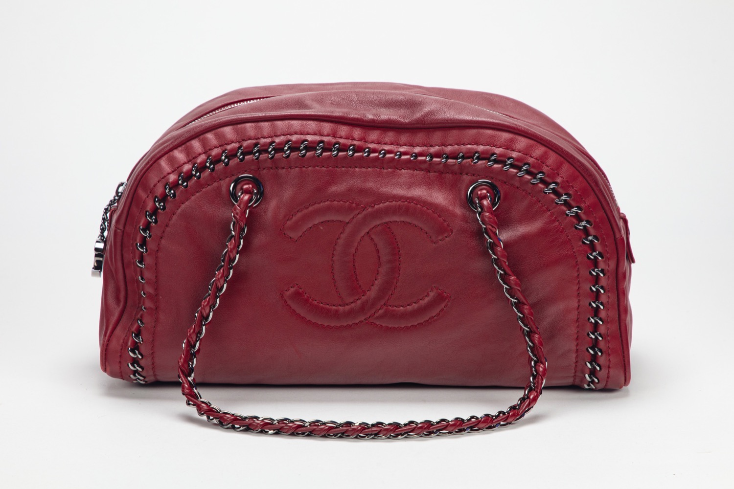 in pelle color rosso, doppia tracolla, dettagli in metallo, cm 33in pelle color rosso, doppia tracolla, dettagli in metallo, cm 33