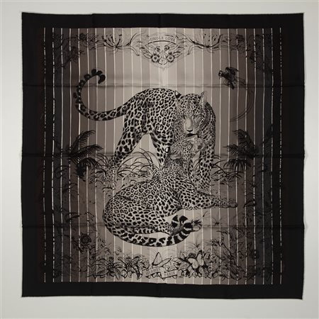 in seta su fondo color grigio e bordo color nero, Robert Dallet, con scatola in seta su fondo color grigio e bordo color nero, Robert Dallet, con scatola