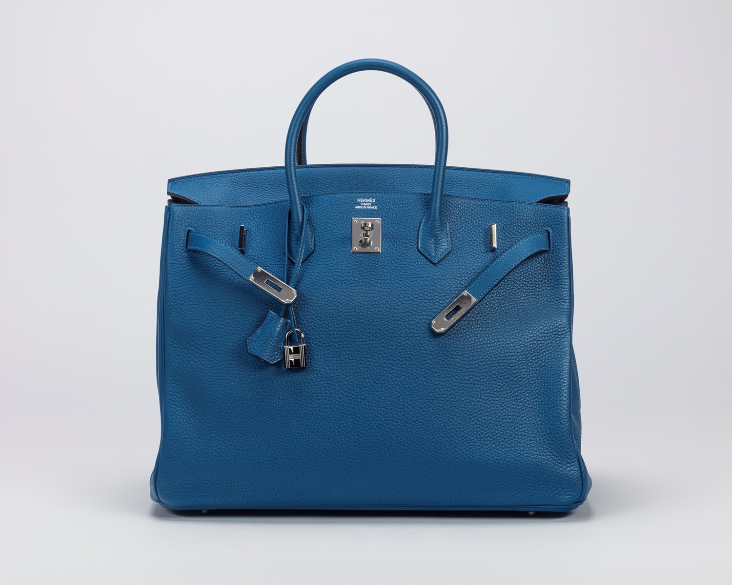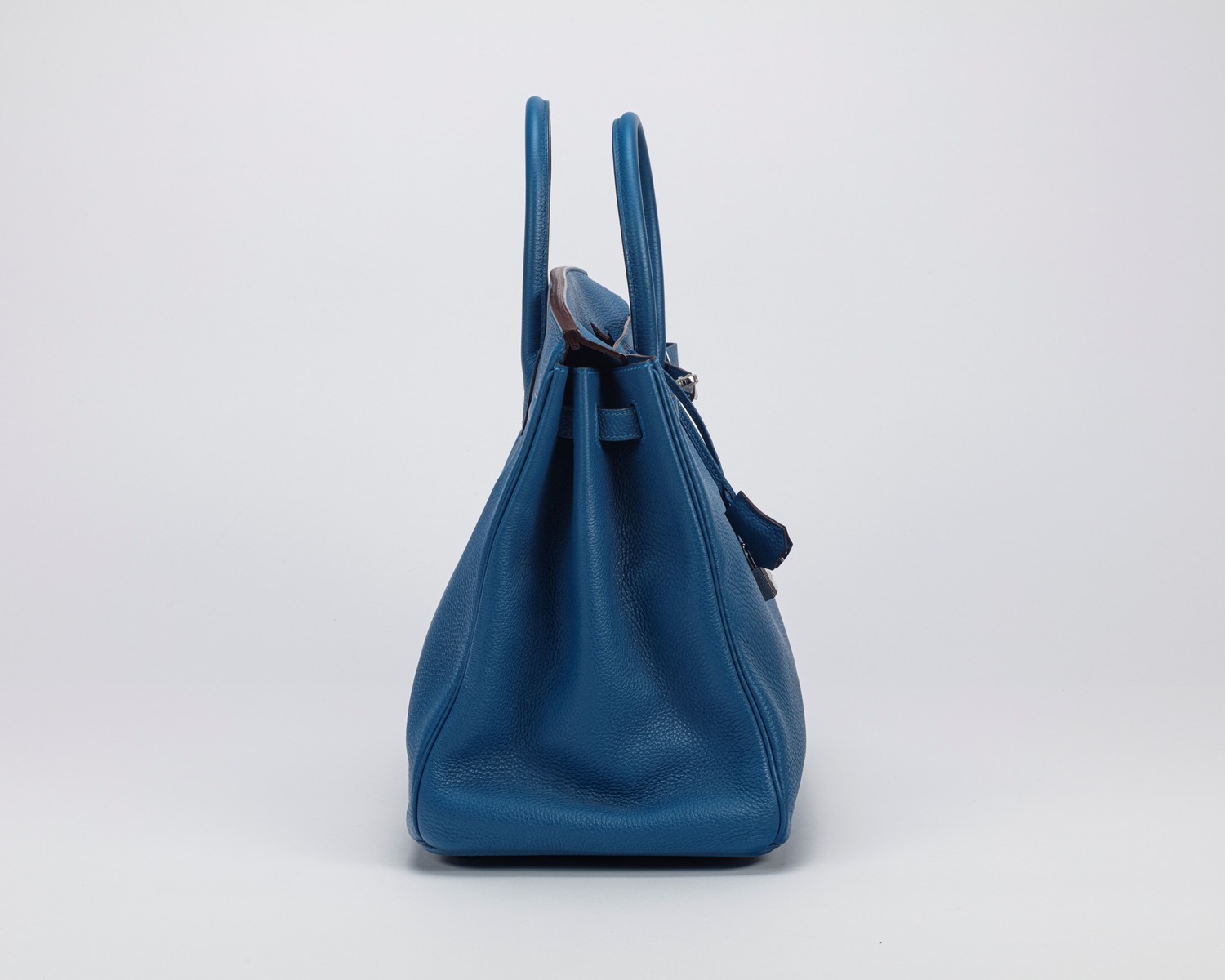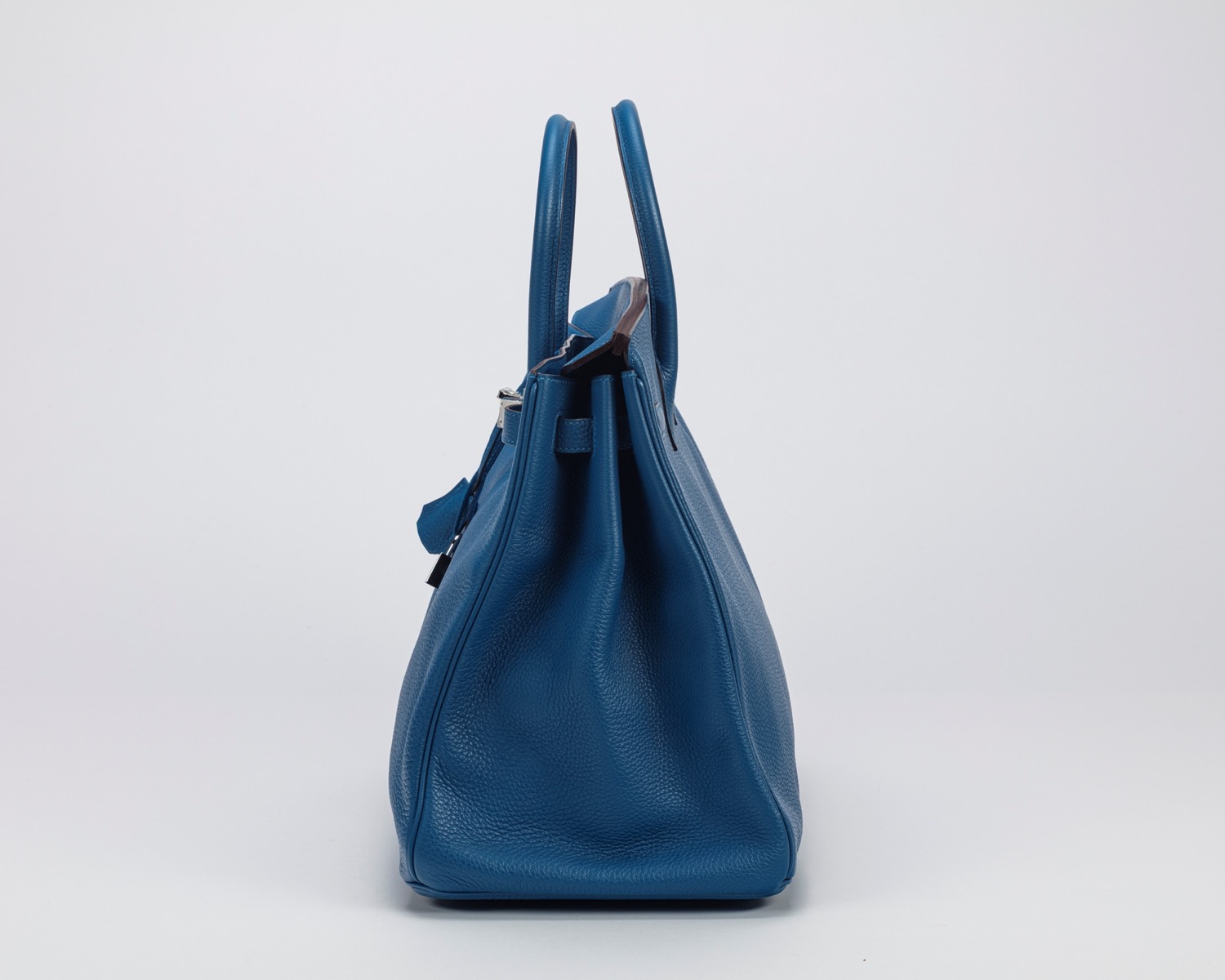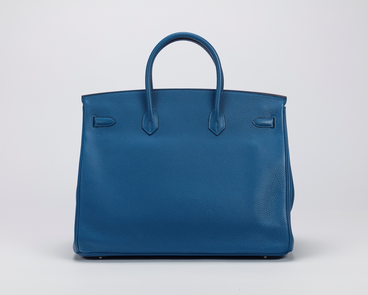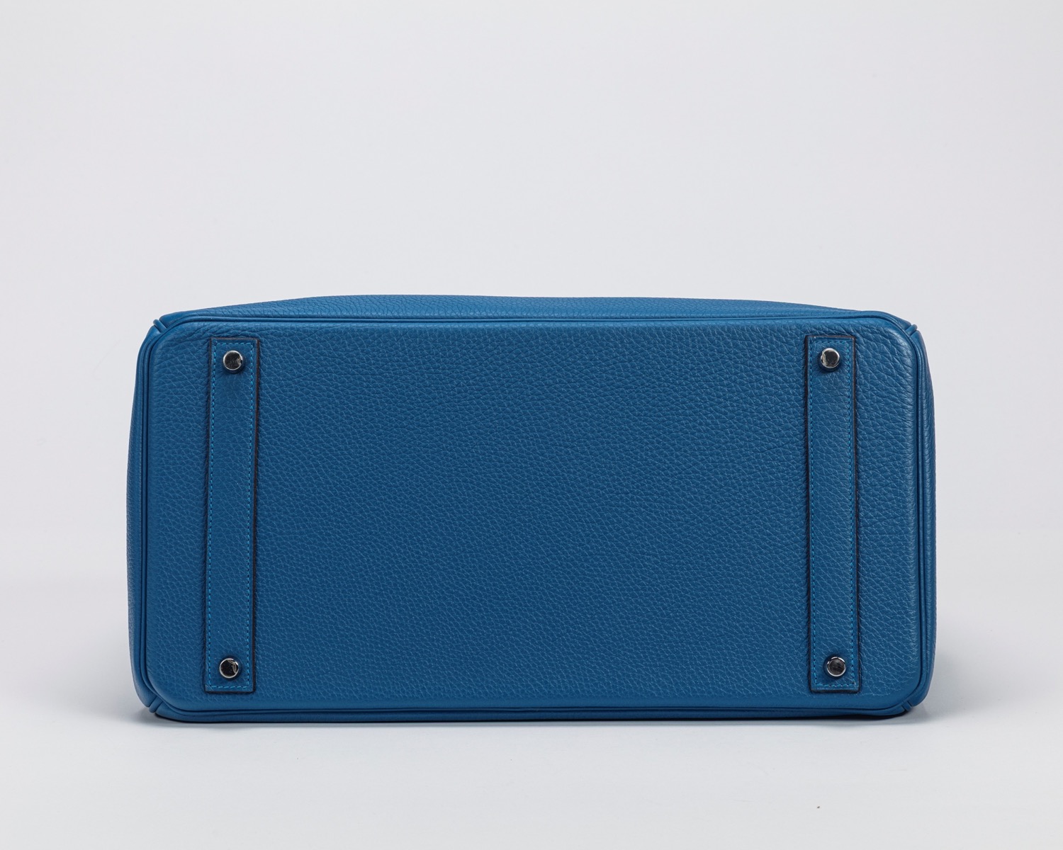 in pelle togo color bleu de Malte, dettagli in palladio, cm 40, con sacchetto (lievissimi segni d'uso)in pelle togo color bleu de Malte, dettagli in palladio, cm 40, con sacchetto (lievissimi segni d'uso)