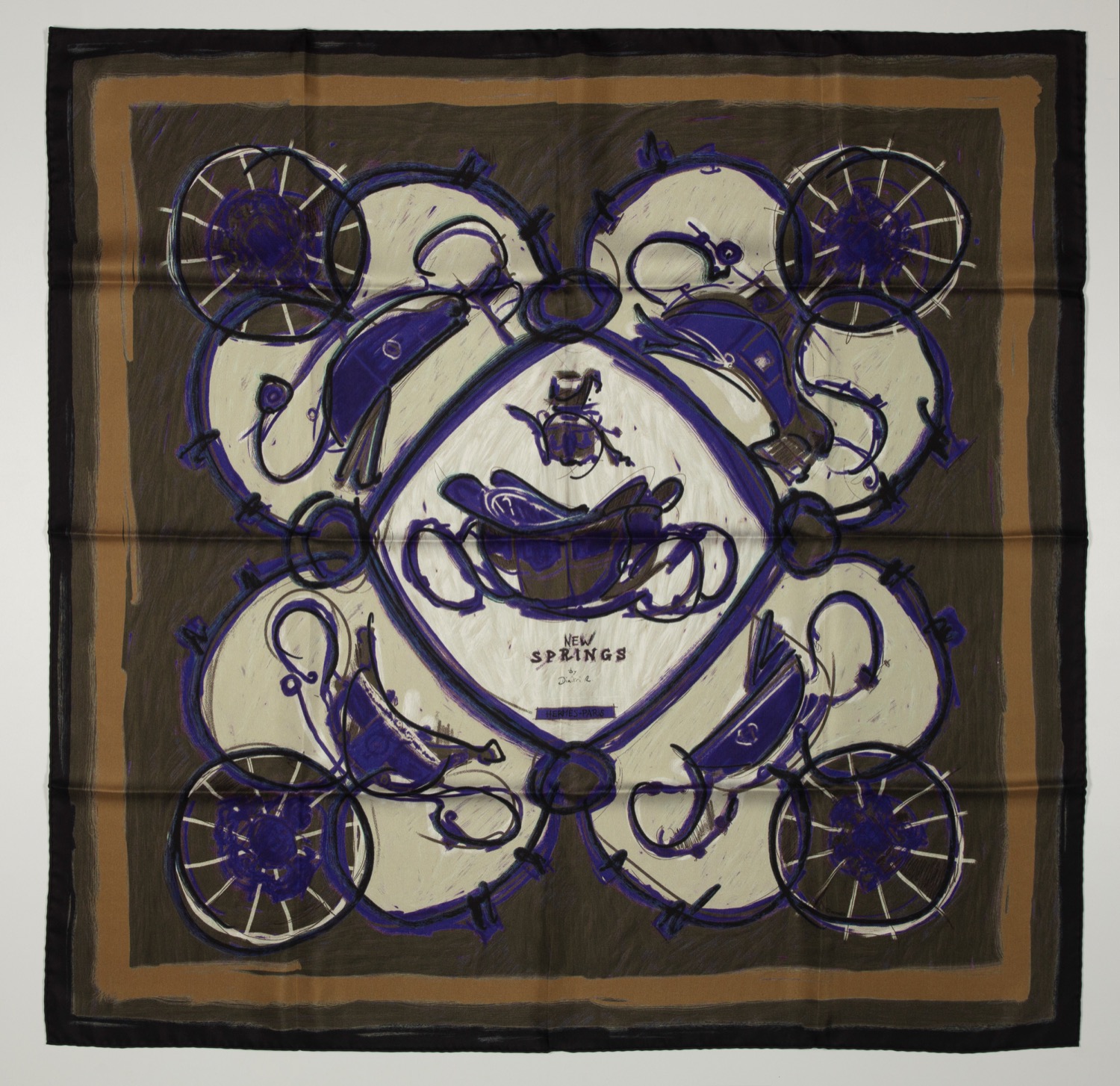 in seta, bordo color marrone, Dimitri Rybaltchenco, con scatola in seta, bordo color marrone, Dimitri Rybaltchenco, con scatola