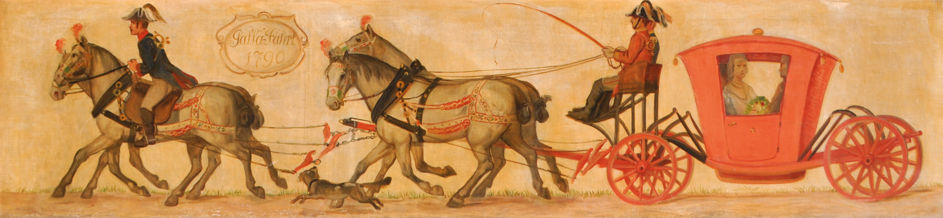 Albert Stolz (Bozen/Bolzano 1875 - 1947) Cavalcata di gala 1790, 1920;dalla serie di dipinti del Gasthof zur Post di Bolzano