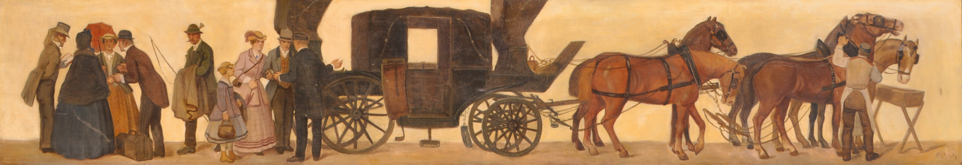 Albert Stolz (Bozen/Bolzano 1875 - 1947) Ricevimento con carrozza, 1920;dalla serie di dipinti del Gasthof zur Post di Bolzano
