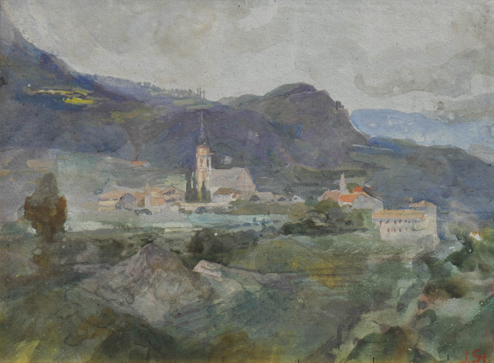 Ignaz Stolz (Bozen/Bolzano 1868 - Lana 1953) San Paolo, Appiano;Guazzo, 19 x 26 cm, in cornice