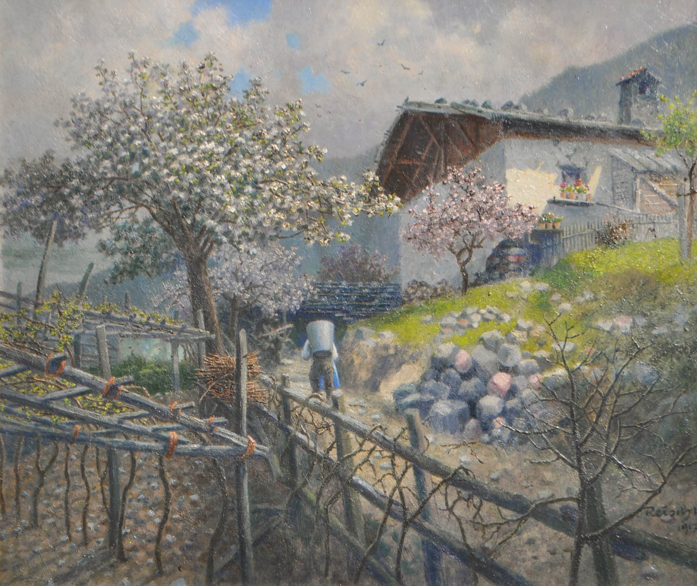 Franz August Carl Maria Reisch (Wien/Vienna 1862 - Meran/Merano 1936) Vicolo da Maia Alta a Scena, 1917;Olio su cartone, 60 x 75 cm, in cornice