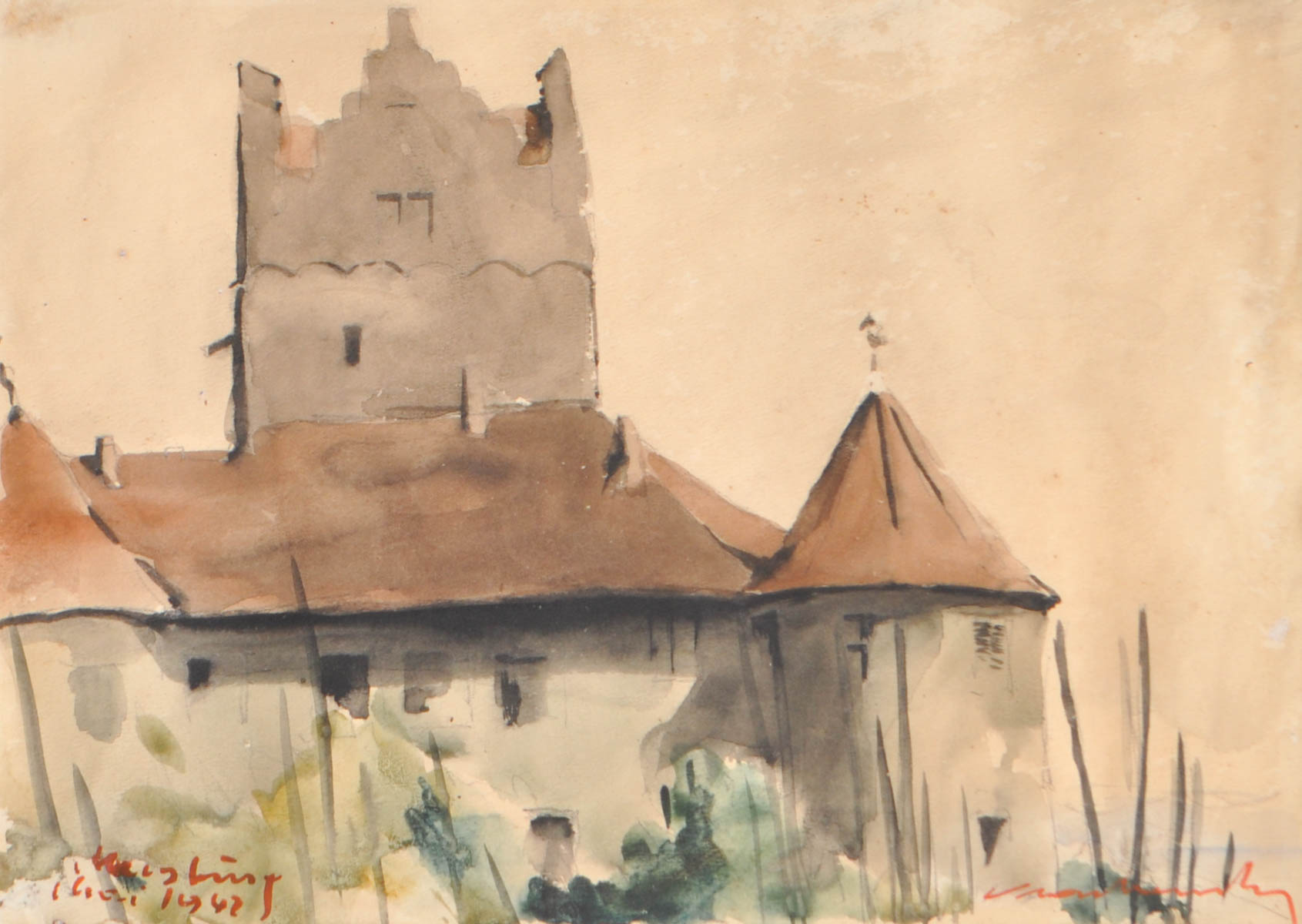 Wilhelm Nicolaus Prachensky (Innsbruck 1898 - 1956) Castello, 1942;Acquerello, 21 x 29,5 cm, brunito, in cornice
