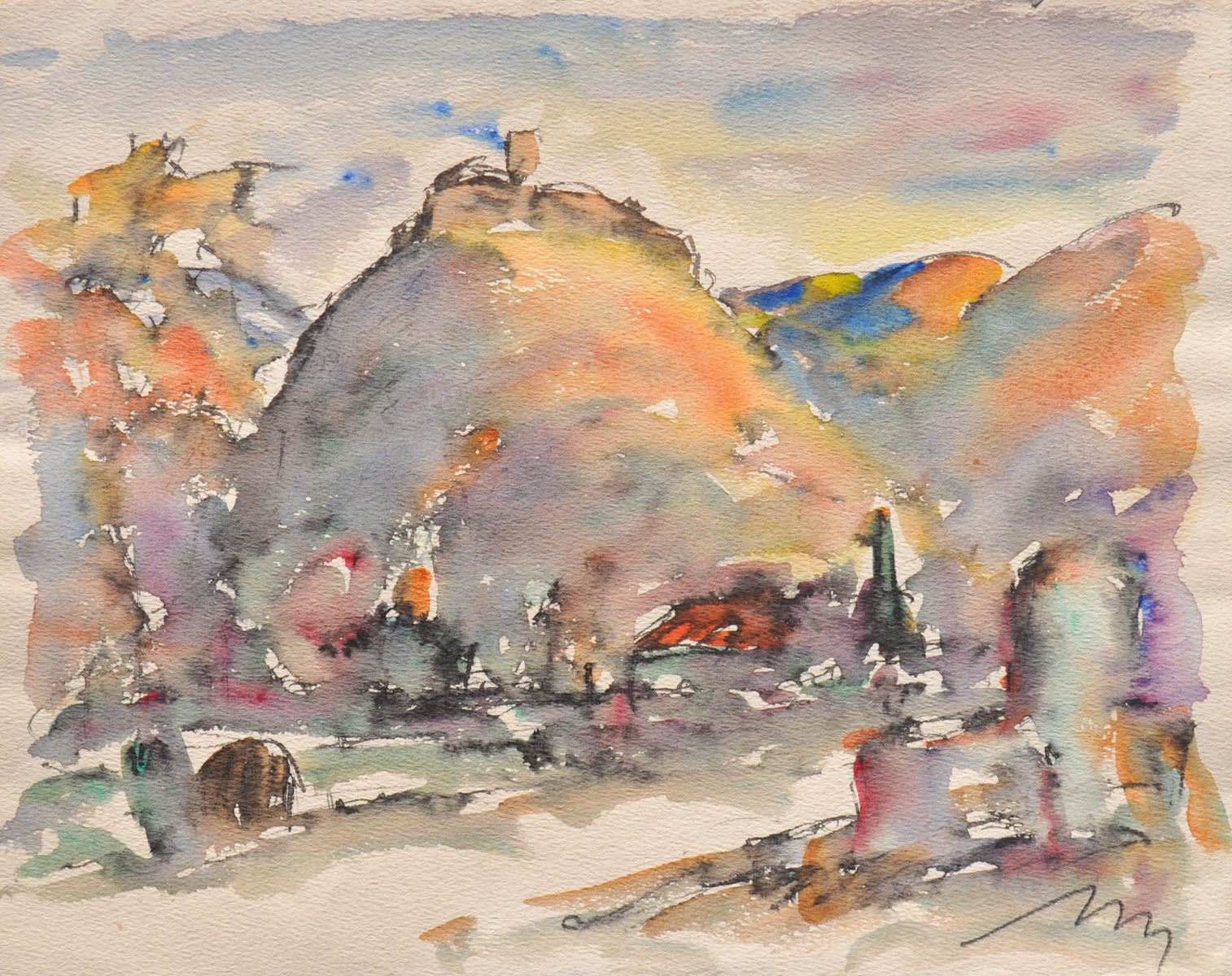 Josef Mahlknecht (Bozen/Bolzano 1886 - Meran/Merano 1953) Castel Beseno, Trentino;Acquerello e china, 20,6 x 25,8 cm