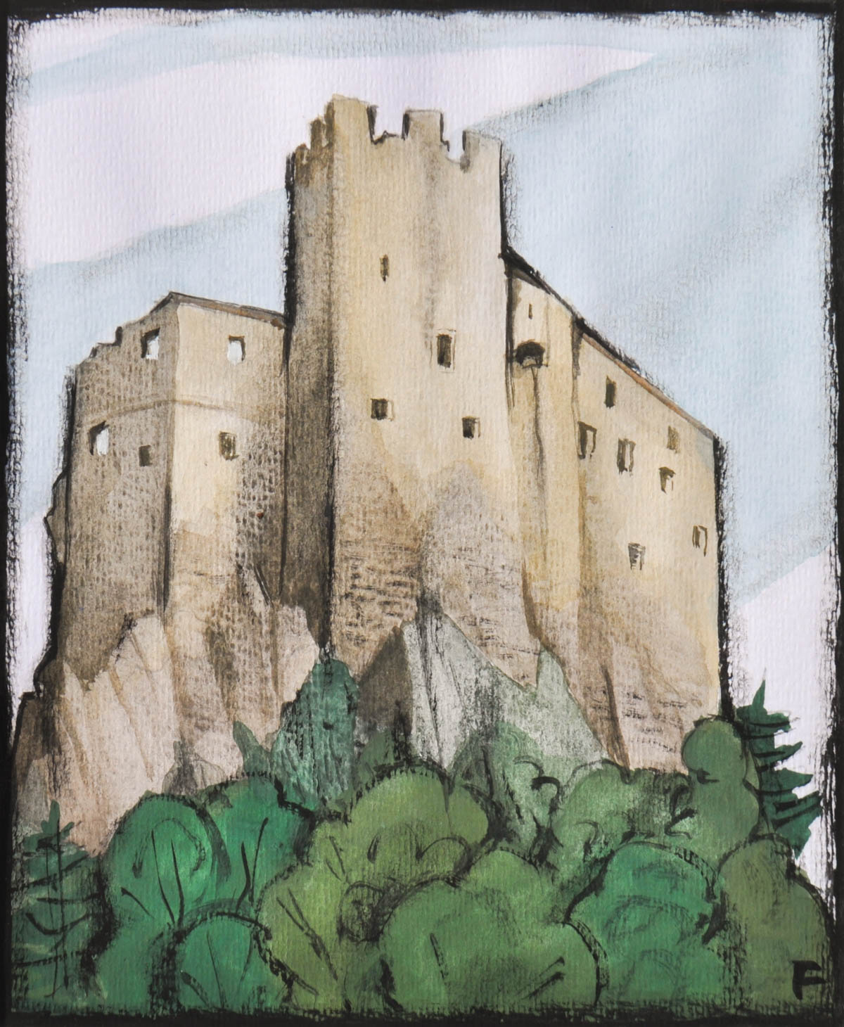 Peter Fellin (Revò 1920 - Meran/Merano 1999) Castello di San Michele a San Lorenzo di Sebato;Guazzo, 17 x 14 cm (immagine)