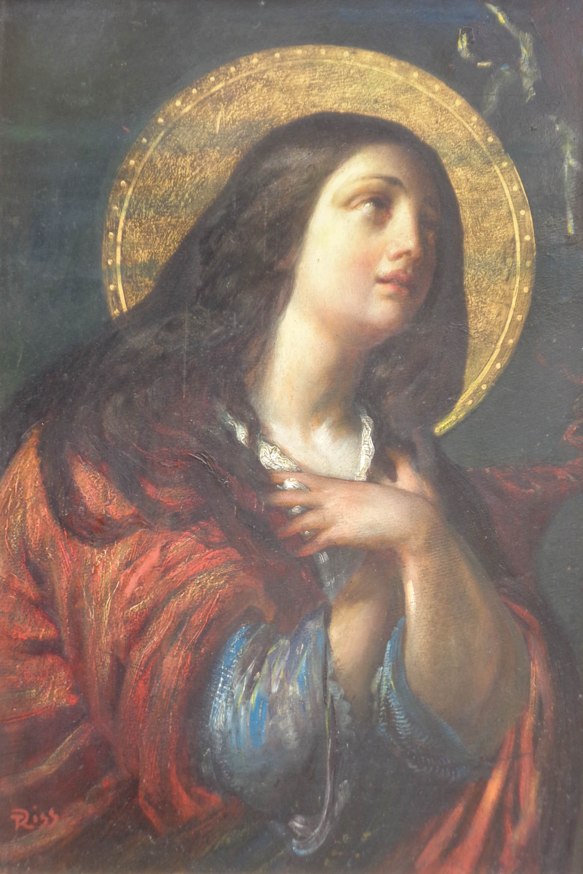 Thomas Riss (Haslach, Stams 1871 - Innsbruck 1959) Madonna;Olio su cartone, 55 x 35 cm, in cornice