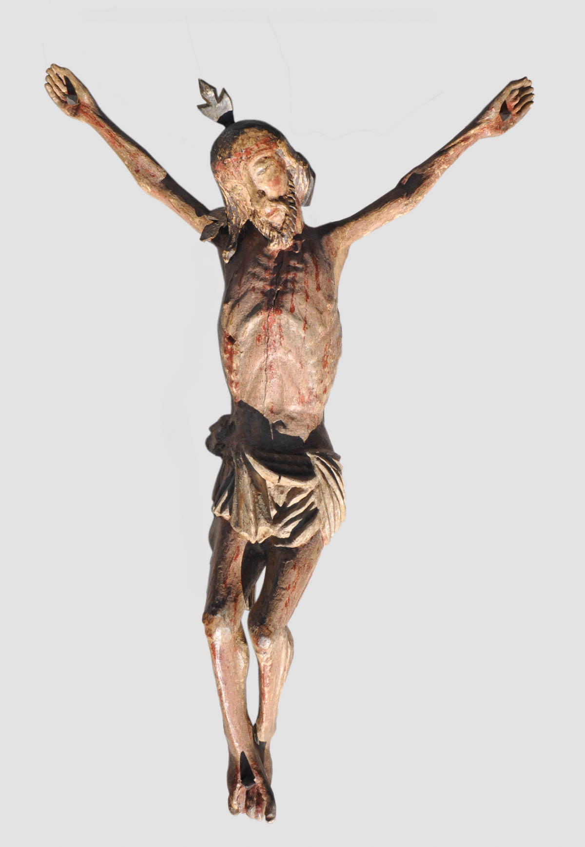 Anonym/anonimo Crocifisso, Corpus Domini, Tirolo XVIII secolo;Legno dipinto, altezza 65 cm, danni dovuti all'età