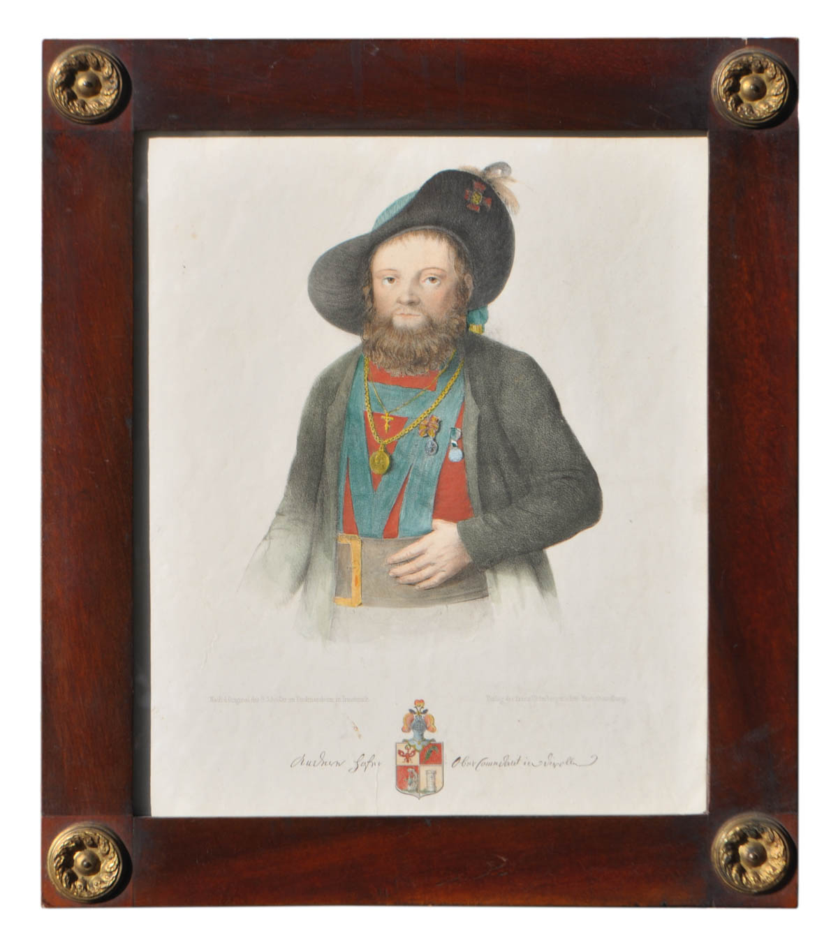 Johann Georg Schädler (Schedler) (Konstanz/Costanza 1777 - Innsbruck 1866) Andreas Hofer, 1830 ca.;Litografia colorata, 32,5 x 27 cm, in cornice