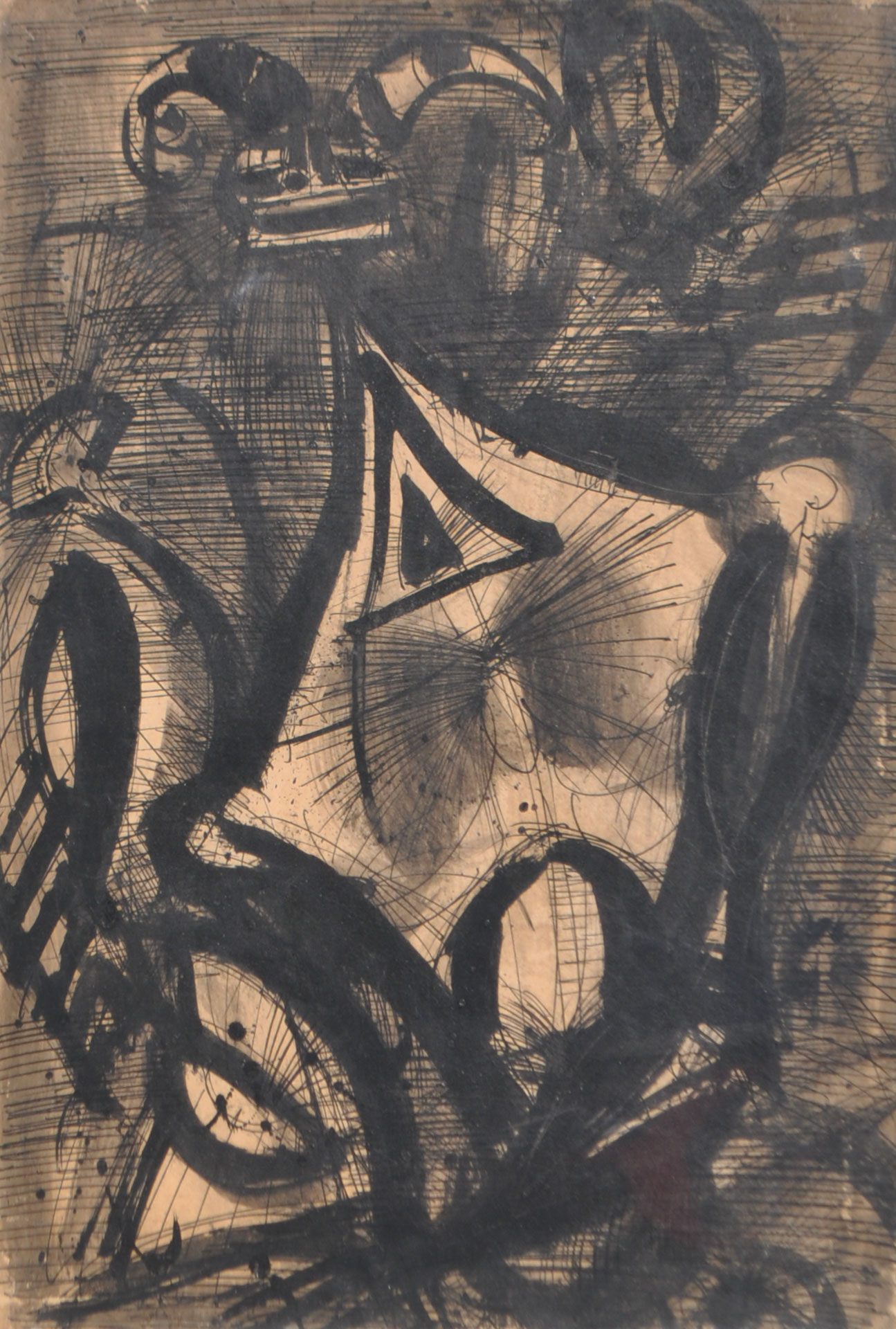 Luigi Spazzapan (Gradisca d’Isonzo 1889 - Turin/Torino 1958) Fauno, 1952;China su carta applicata su tela, 48 x 33,5 cm, al retro