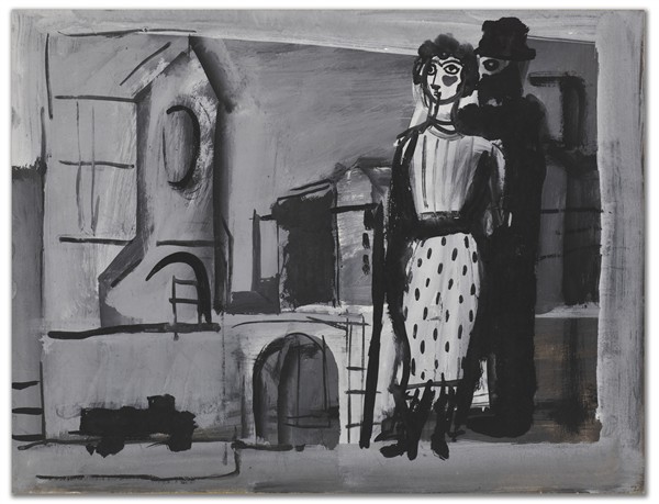 Mario Sironi "Paesaggio urbano e figure" 1939 circa tempera e matita su carta cm