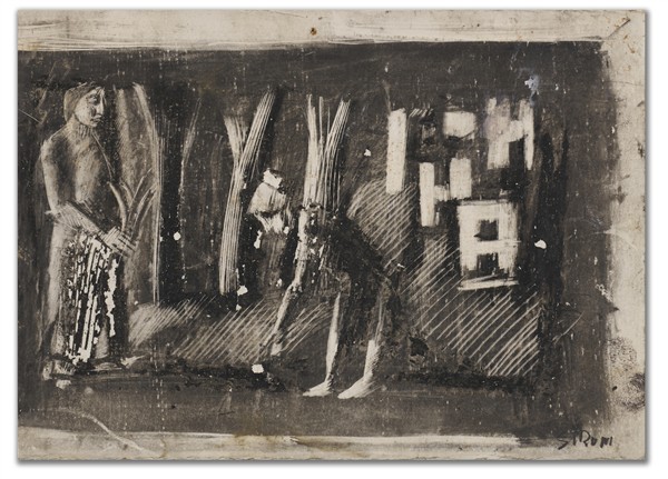 Mario Sironi "Lavoratori nei campi" 1941 circa tempera e cera graffita su carta
