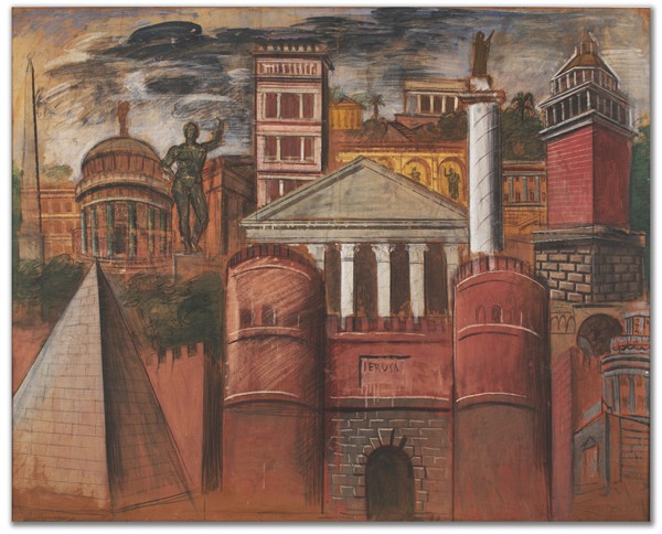Achille Funi "Gerusalemme" 1934 ca. tecnica mista su carta intelata cm 159x200