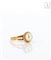 Anello in oro giallo 18 carati (750 millesimi) incastonato su montatura a corolla di perla coltivata.