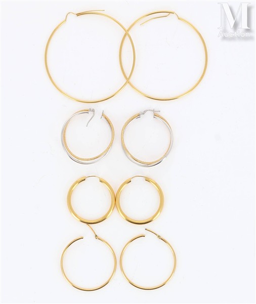 Lot de quatre paires de créoles en or jaune et blanc 18k (750 millièmes).