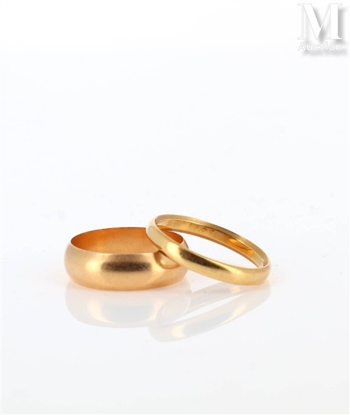 Deux alliances Deux alliances en or jaune 18k (750 millièmes). Poids: 6,3g...
